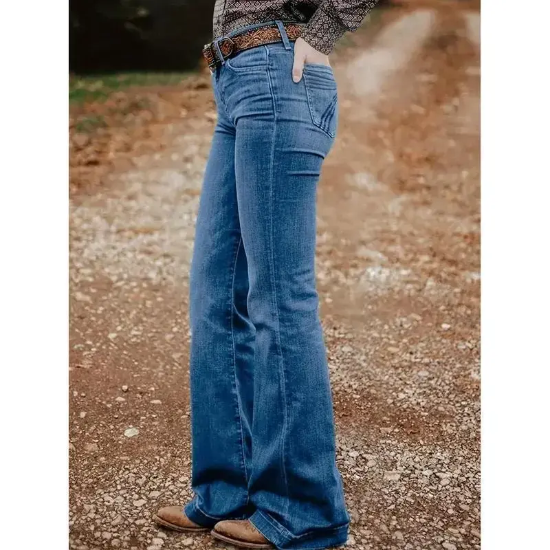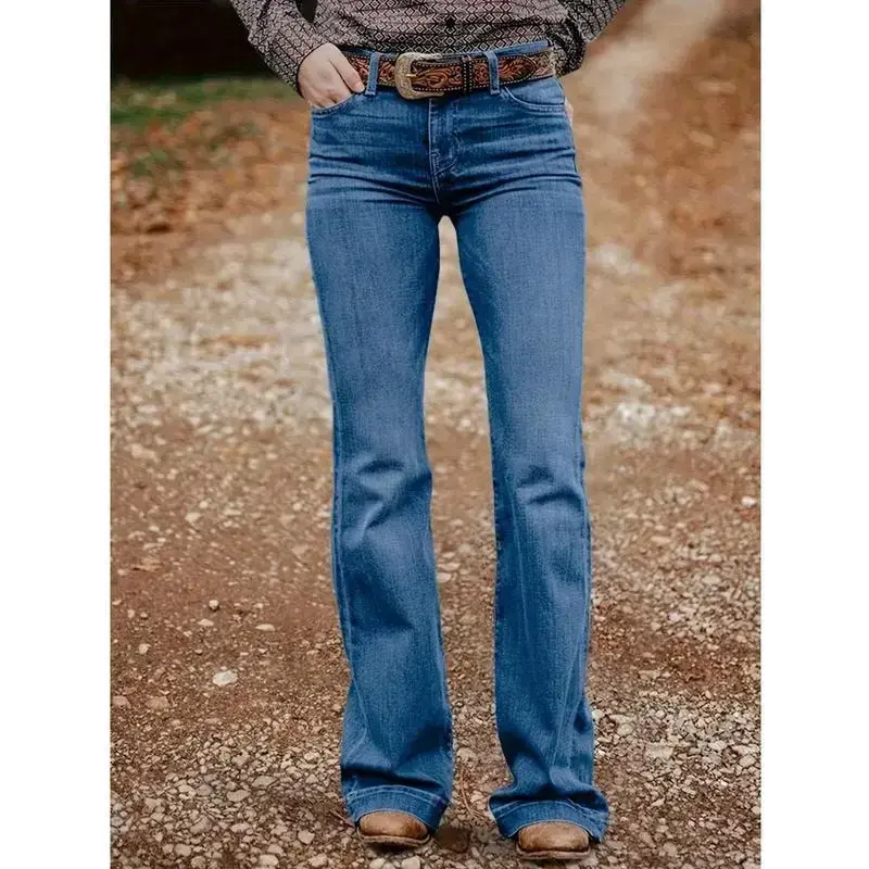 Women's High-Waisted Flare Jeans - Non-See-Through Cowboy Bootcut Pants, Machine Washable All-Season Jeans for Everyday & Formal Outfits - Western Ranch Style Jeans for Women