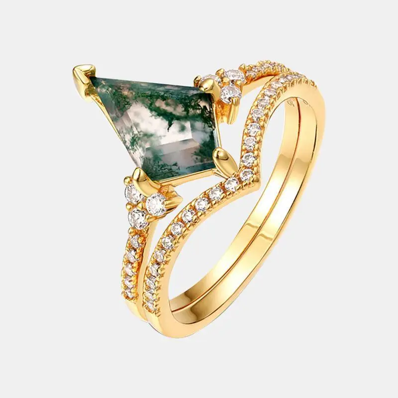 【765】“Mystic Moss” Harmony Moss Agate Modern Event Combination Ring