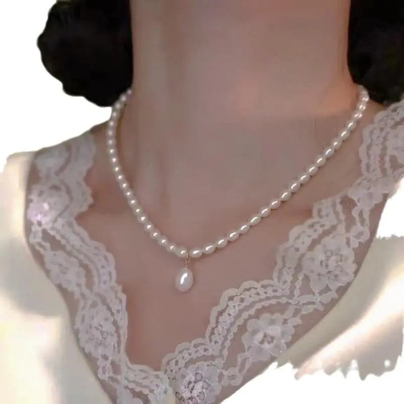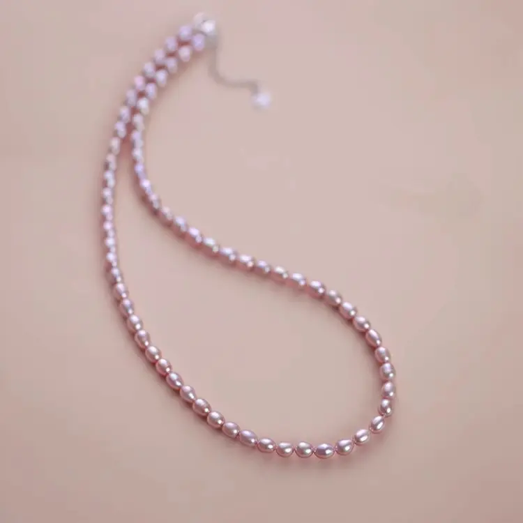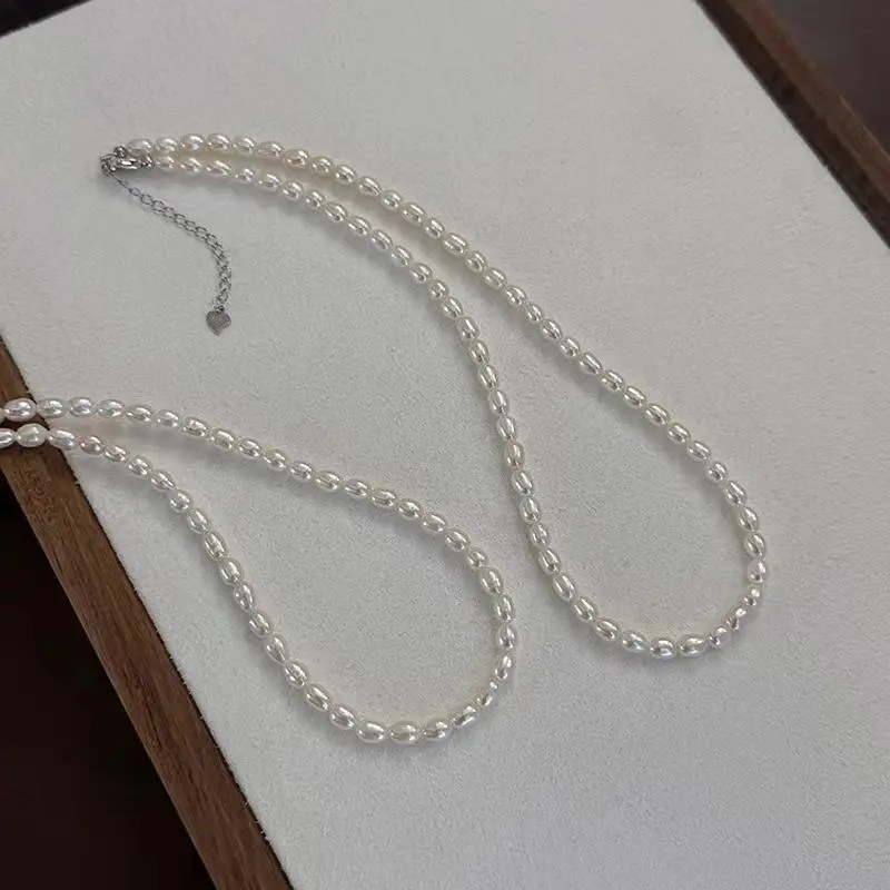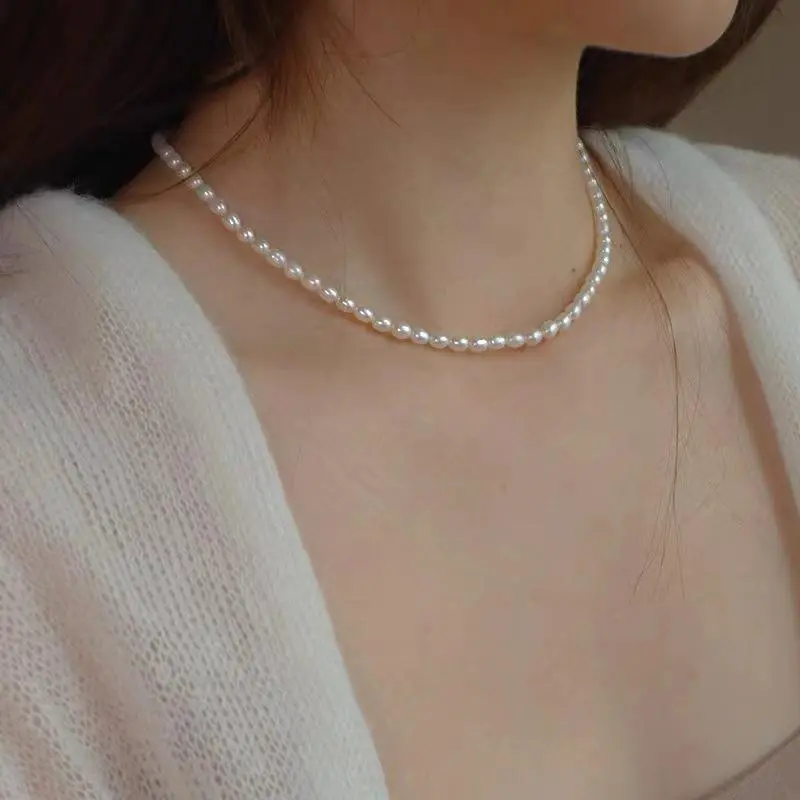 Freshwater Full Pearl Necklace Silver Millet Pearl Necklace 4-5MM Meter Shaped Necklace For Women Gifts