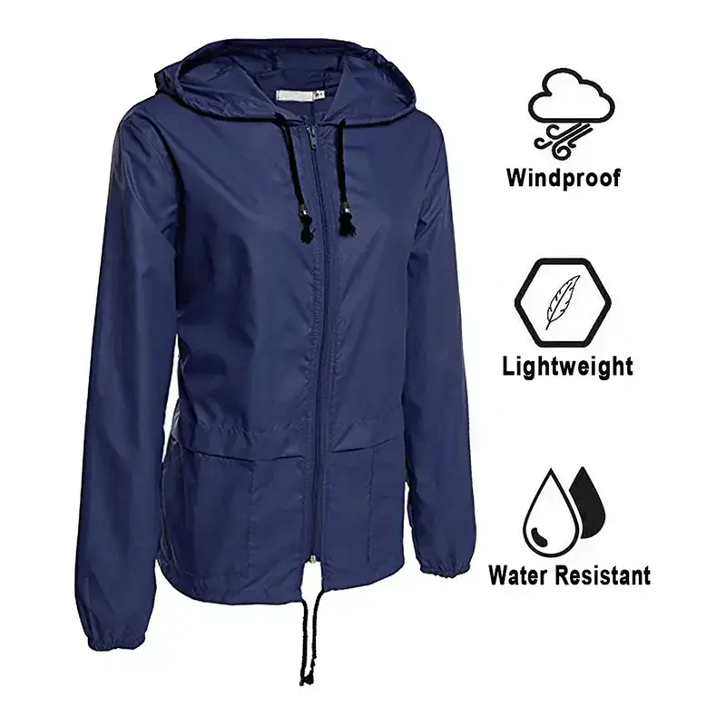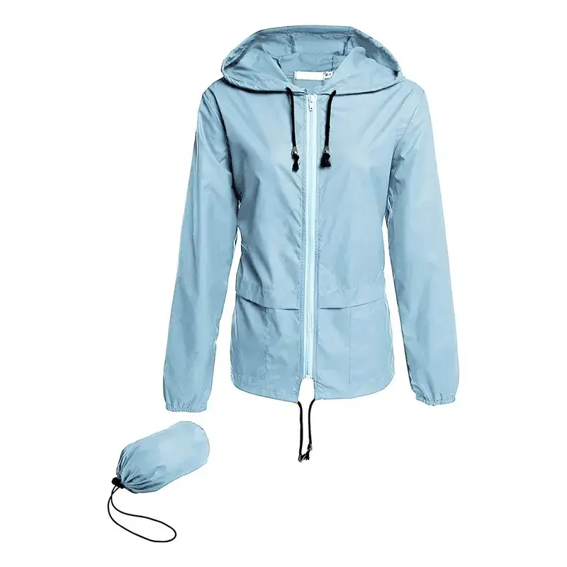 Women Packable Rain Jacket, Outdoor Hooded Windbreaker with Adjustable Drawstring