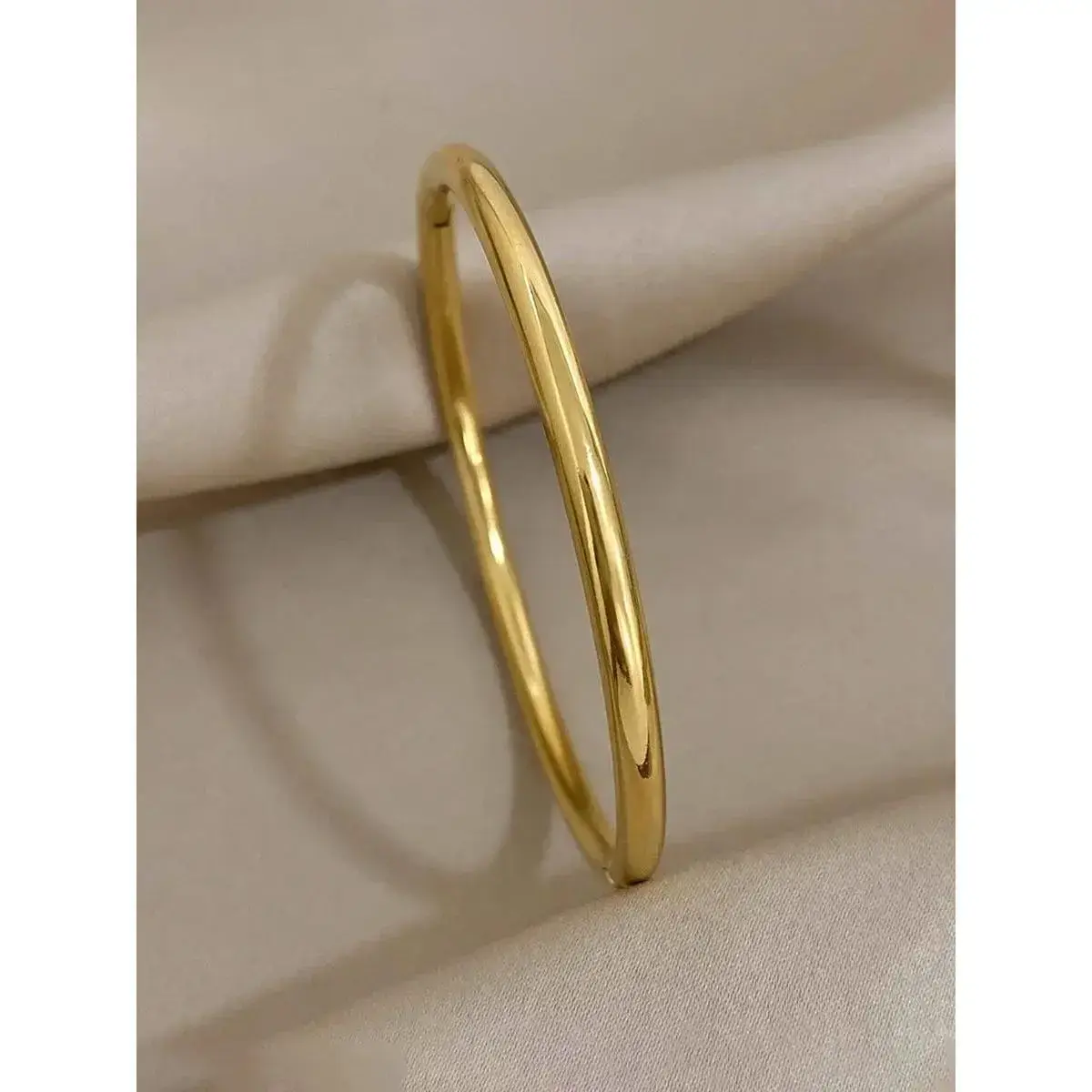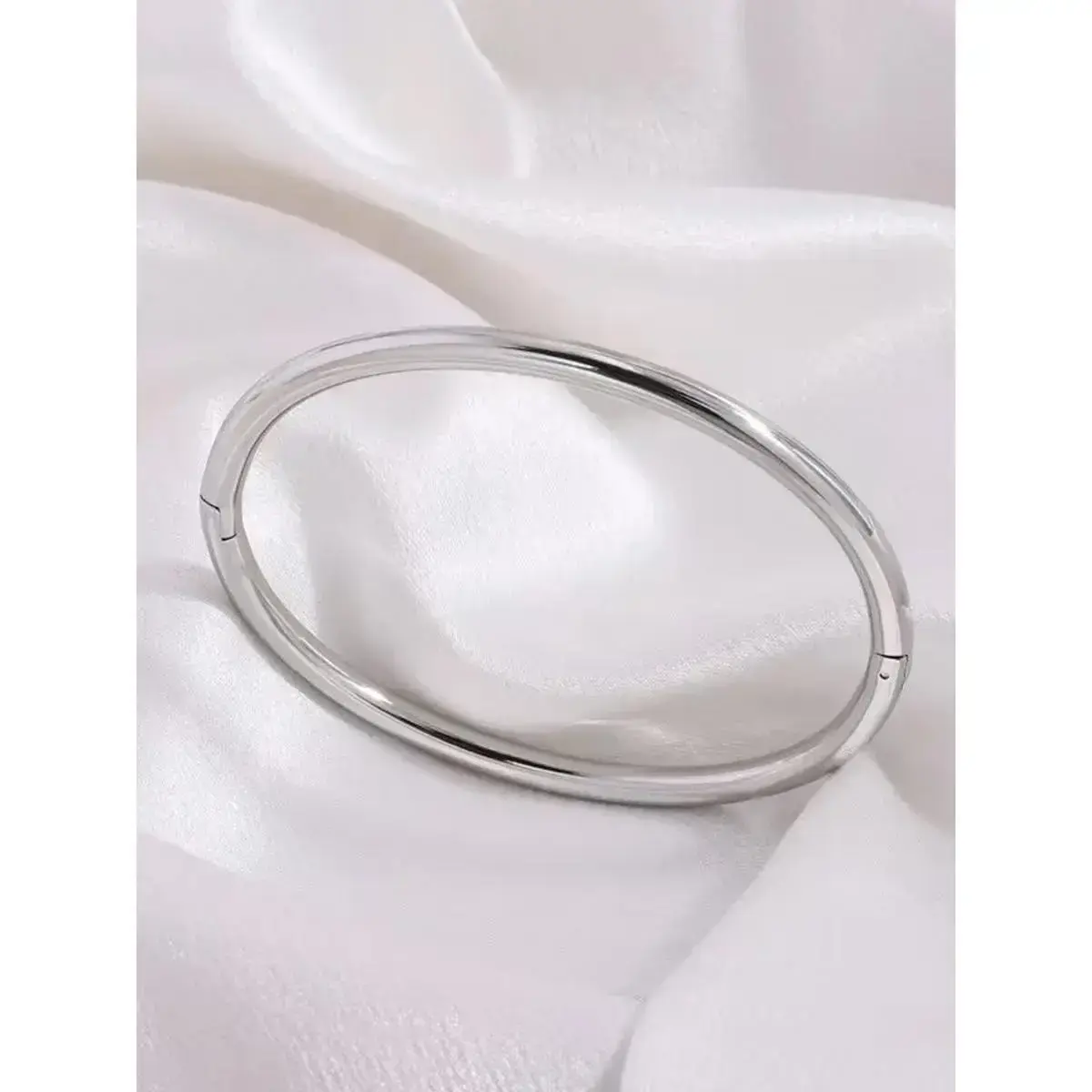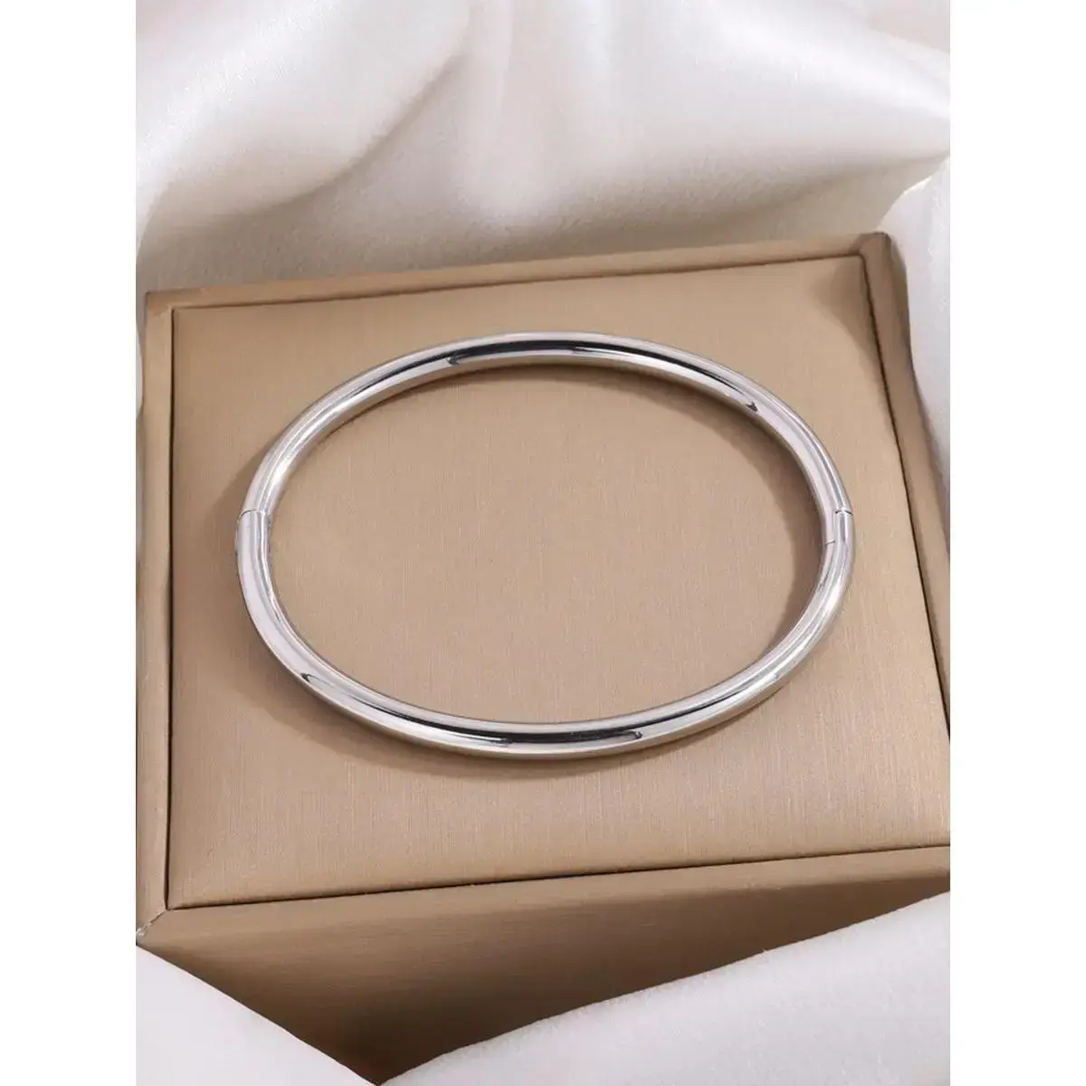 Crafted from stainless steel with a glossy finish, this bracelet adds a luminous touch to any look. Its sleek design ensures it stands out effortlessly, making it a versatile addition to your wardrobe. The open cuff style allows for easy wear and a flexible fit. It accommodates a range of wrist sizes, ensuring comfort and convenience for all users. Versatile and Timeless Featuring a simple, plain pattern, this bracelet is a timeless accessory. It complements various outfits, making it a versatile choice for daily wear and special occasions. Made from high-quality stainless steel, this bracelet promises long-lasting wear. It won't tarnish, ensuring it remains beautiful over time. Perfect Gift Idea This bracelet serves as a thoughtful gift option for various occasions. It appeals to those seeking meaningful presents, making it a perfect choice for gifting. Ideal for women's daily wear and parties, it is an elegant accessory that enhances any ensemble.