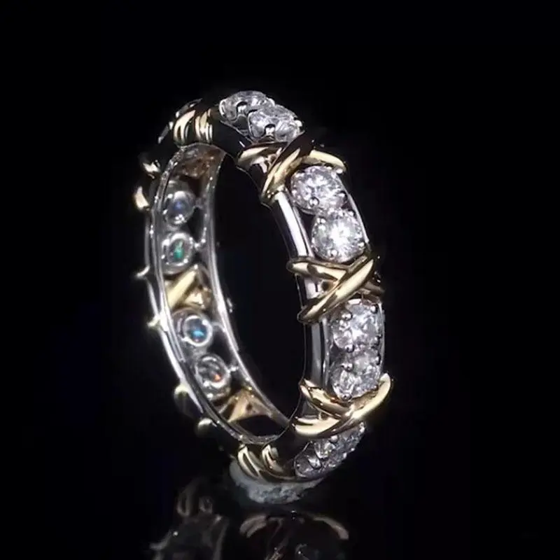 Simulation Moissanite hot jewelry ring copper golden plated color separation inset zircon ring fashion luxury trend Wedding ring jewelry