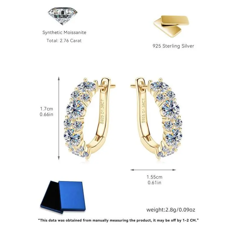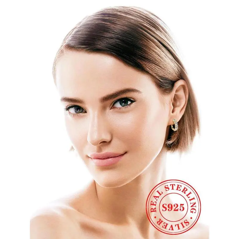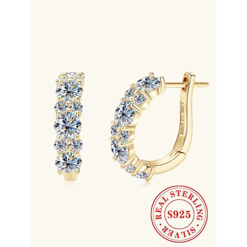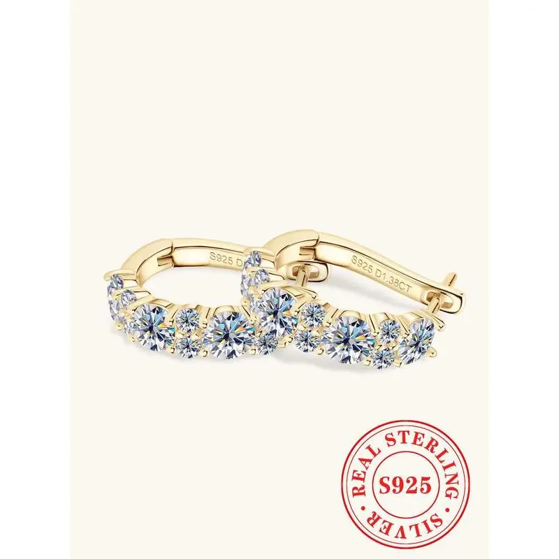 925 Sterling Silver Synthetic Moissanite Fashionable Hoop Earrings, Elegant Jewelry for Women for Party, Daily Clothing Decor, Trendy All-match & Exquisite Jewelry for Birthday Gift