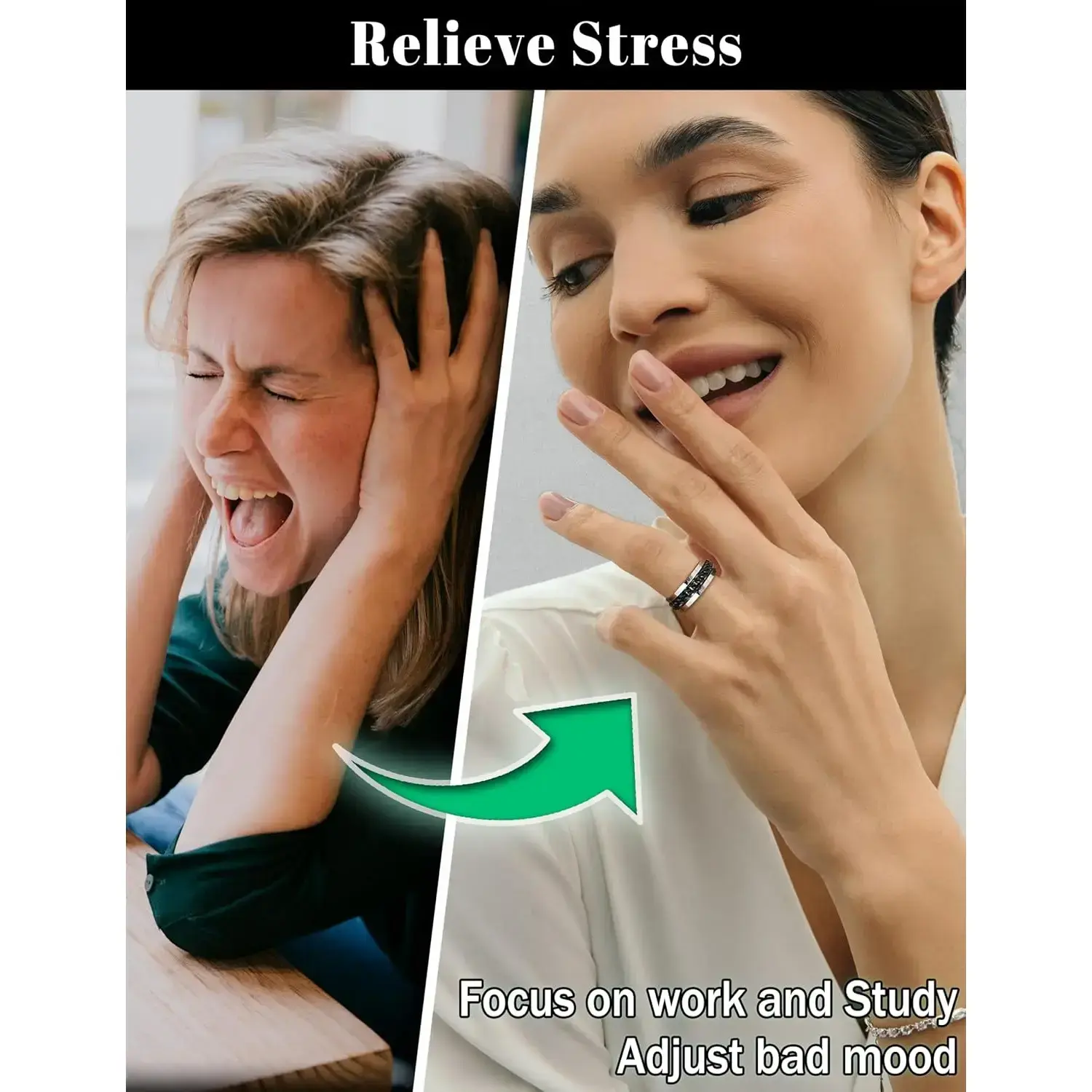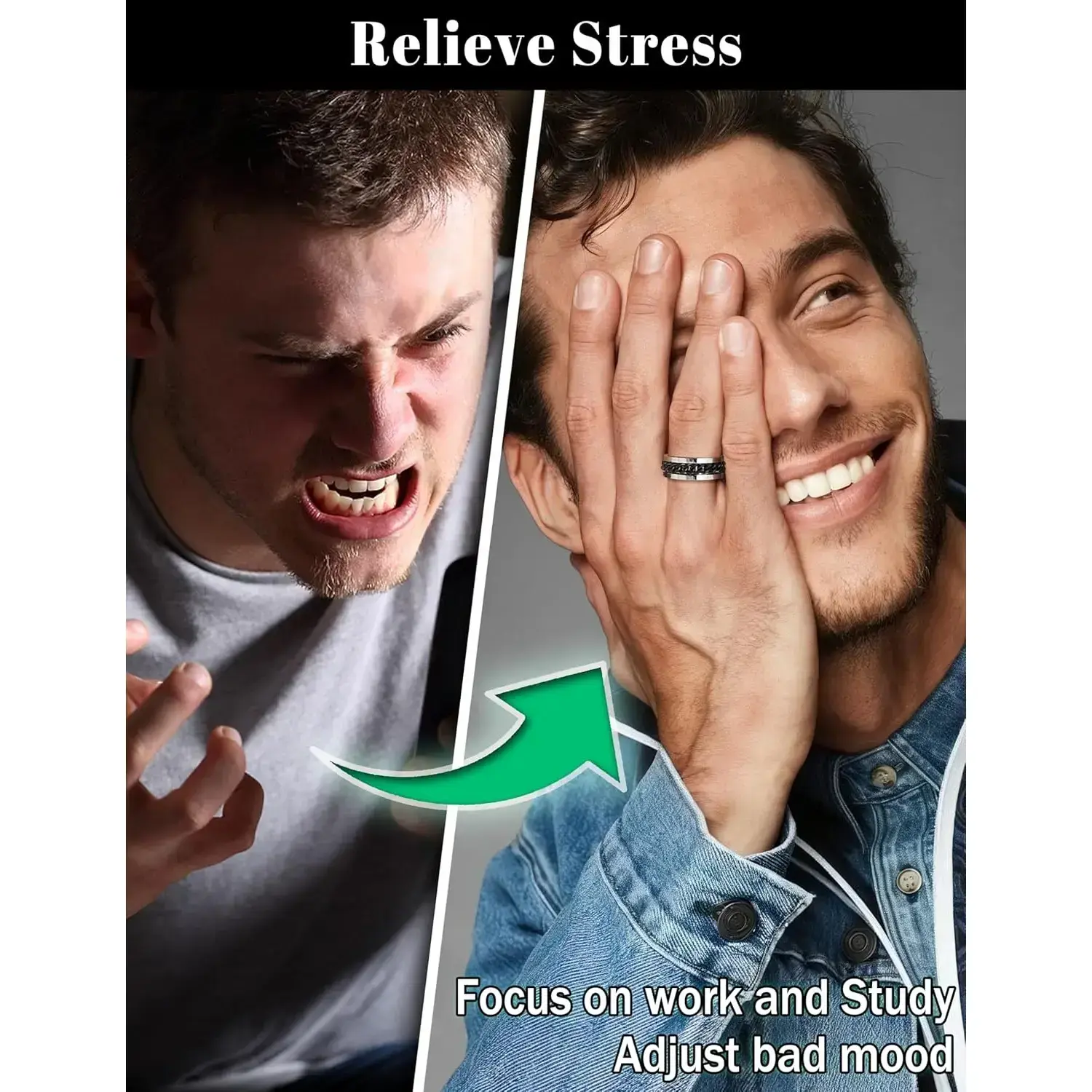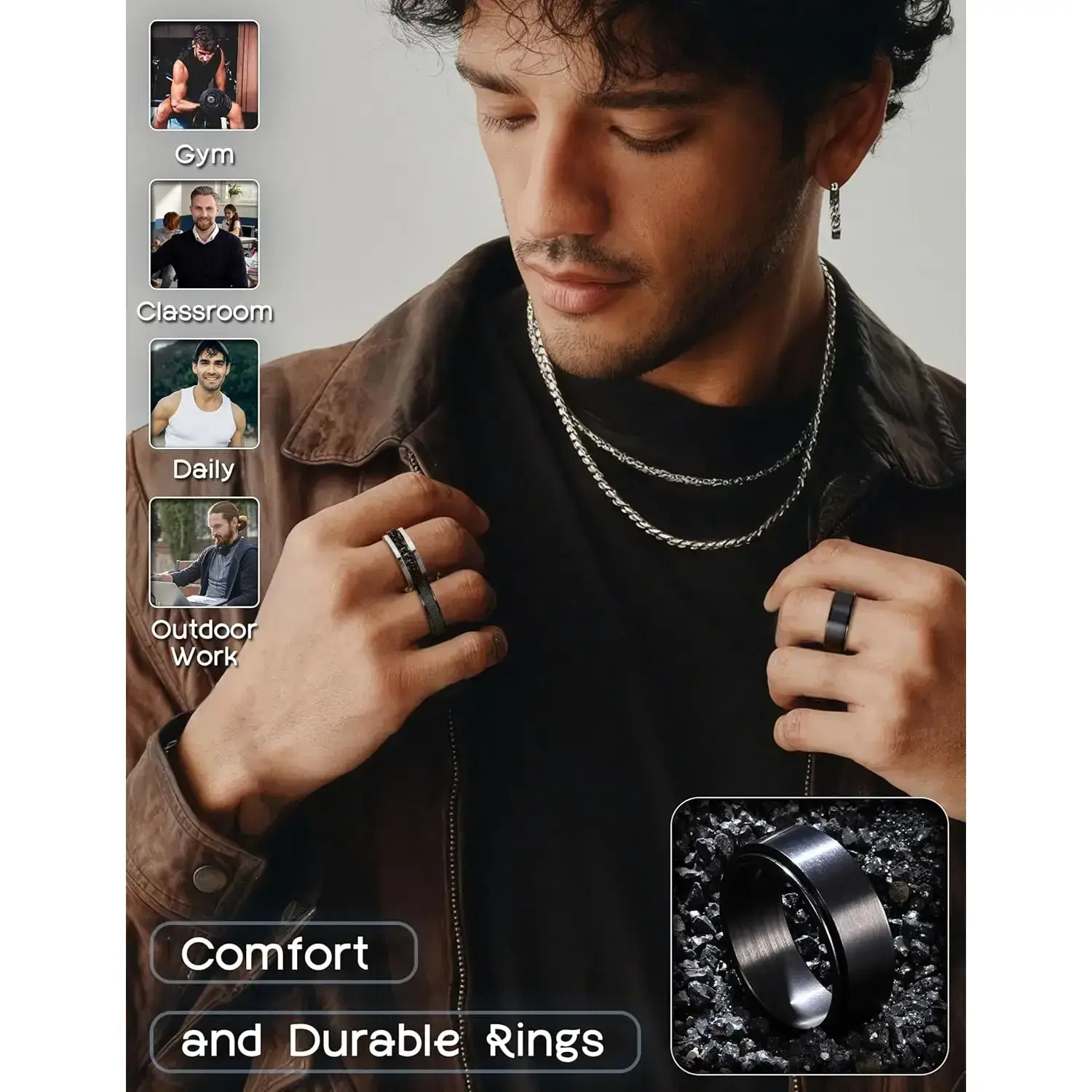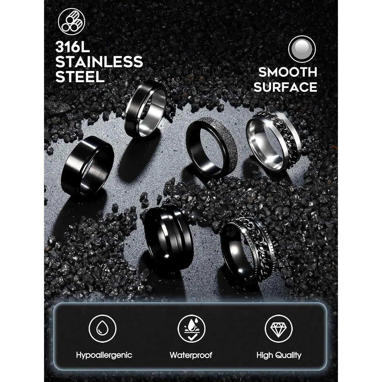 Black men's rotating ring women's stainless steel ring anxiety relief cold chain fashion ring set wedding commitment ring size 7-13