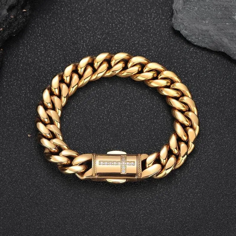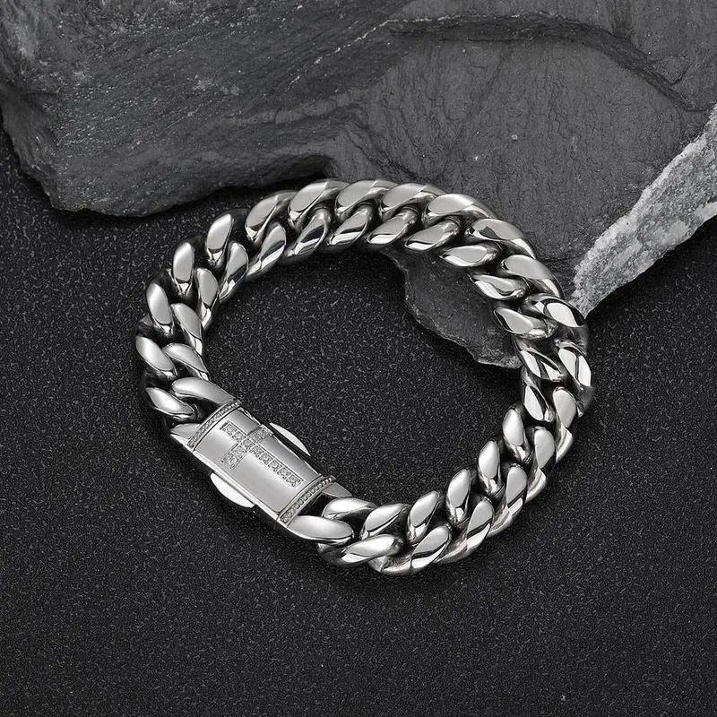 EuropeanandAmericanHotHotSaleStainlessSteelCubanLinkChainMiamiMicroInlaidZirconSpringSnapButtonPersonalityHeadFashionBracelet