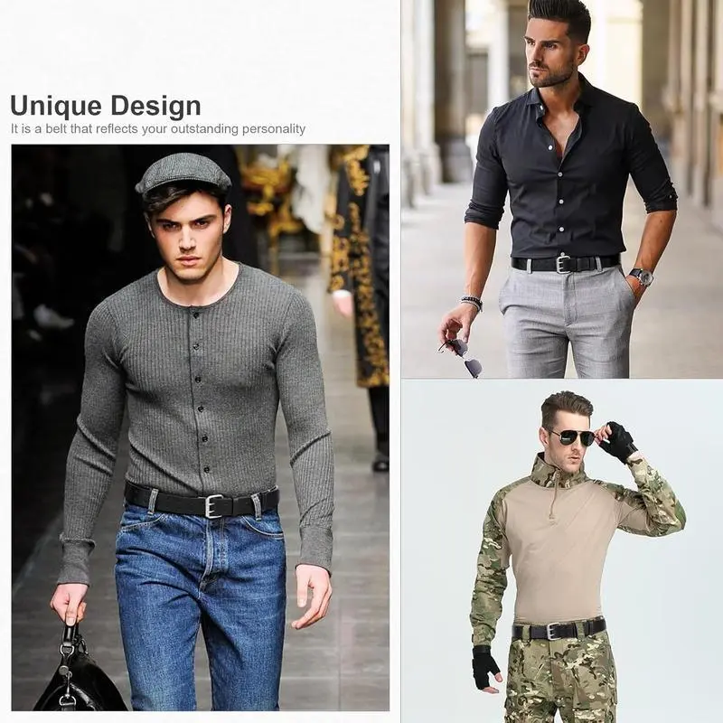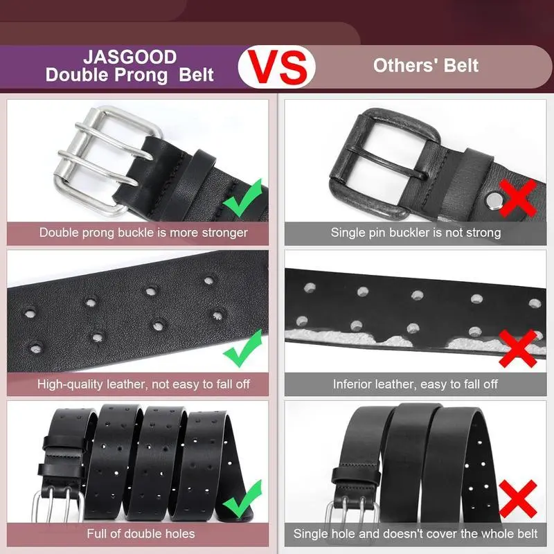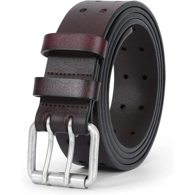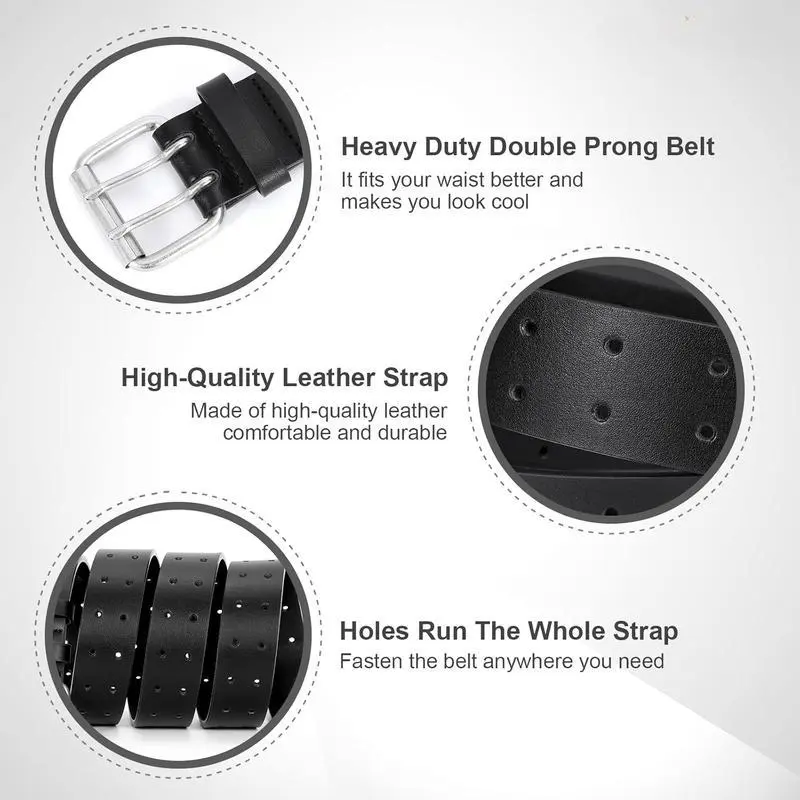 Men's Double Fork Belt Casual Work Heavy Duty Belt Double Hole Belt for Jeans