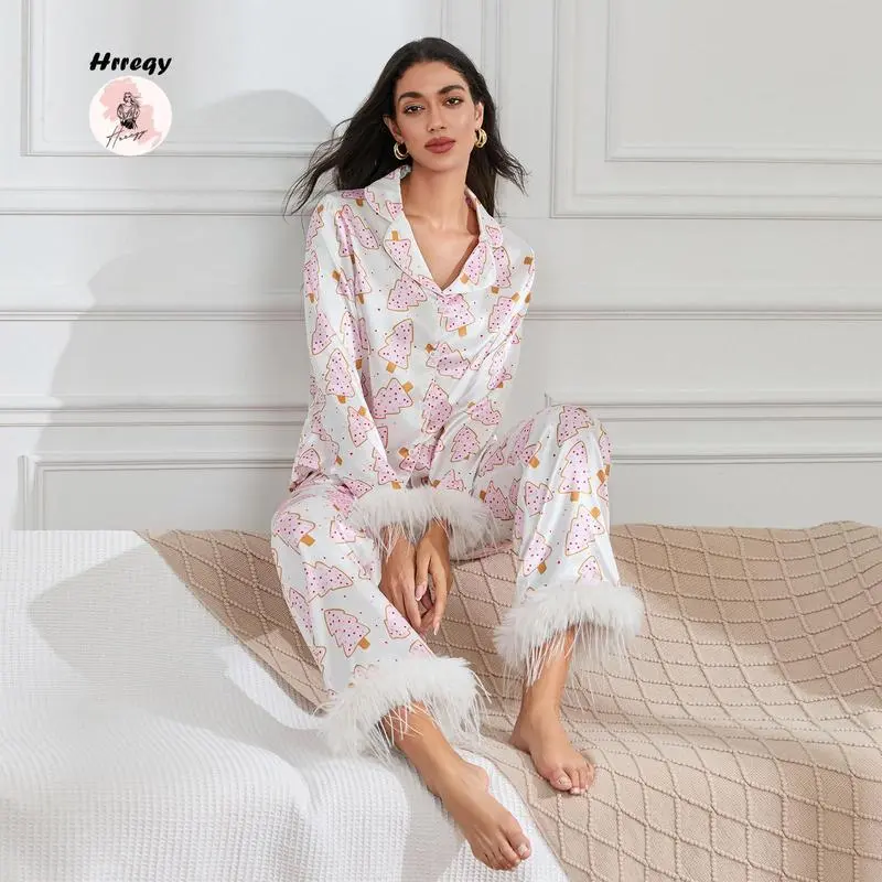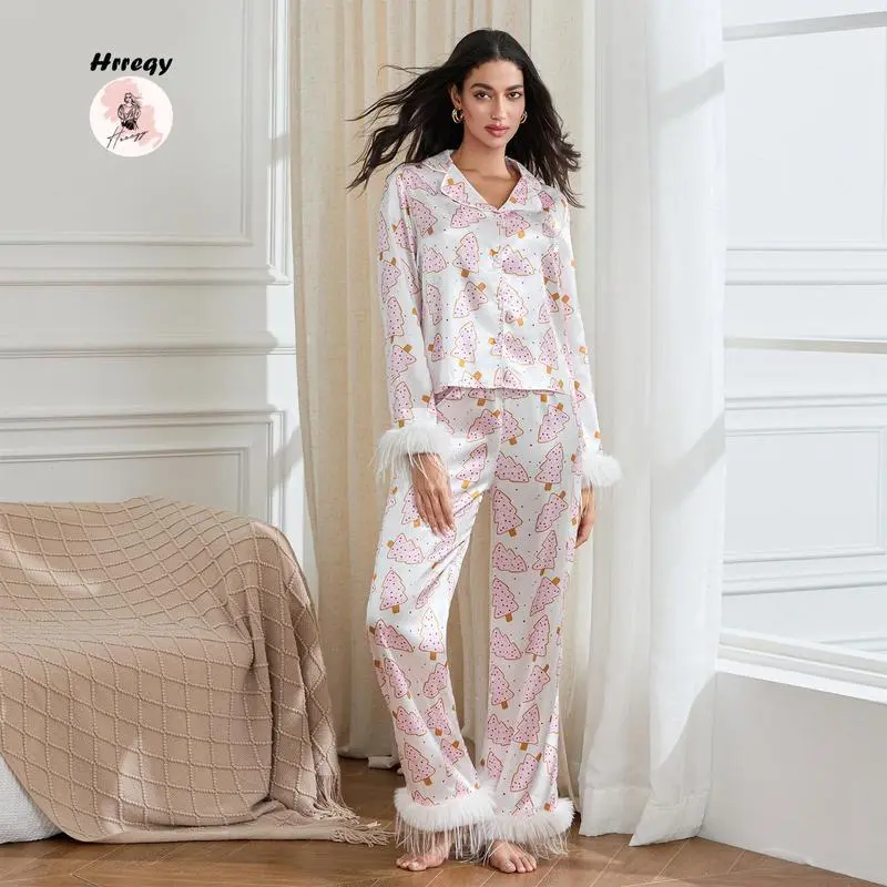 Pajamas for women set Women Christmas Pajamas Lounge Set Santa/Christmas Tree/Boots Print Shirts Tops and Pants 2 Piece Loungewear Outfits casual fashion Nightwear Long Sleeve women's pajama sets Pajamas for women set knit pullover Women's Santa
