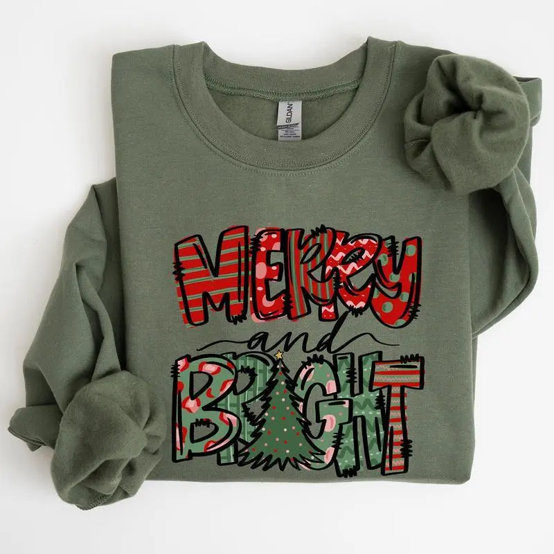 MerryandBright,ChristmasTree,Colorful,Winter,Xmas,SantaSweatshirt,Women'sCrewNeck,Crewneck