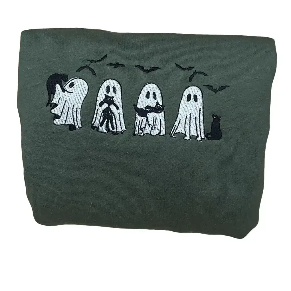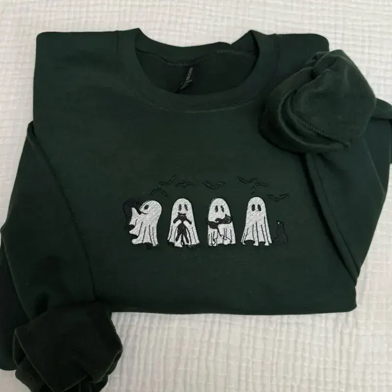 Cute ghosts with black cats embroidered Sweatshirt, Halloween sweatshirt, spooky season sweatshirt, spooky season, spooky szk, spooky cats, cats sweatshirt, Halloween crewneck