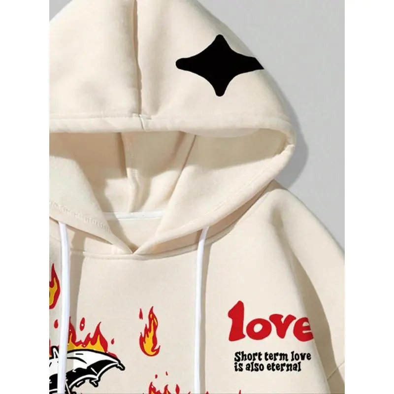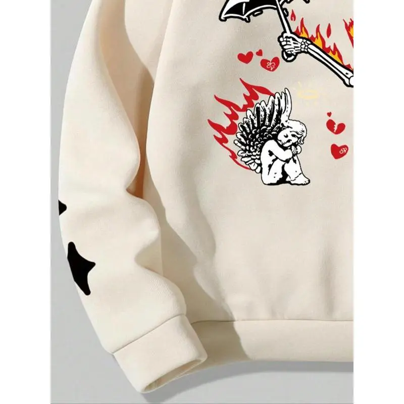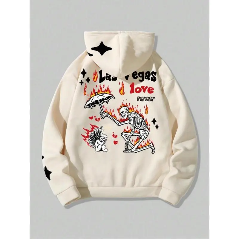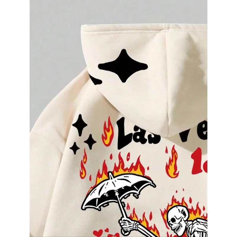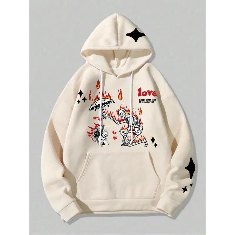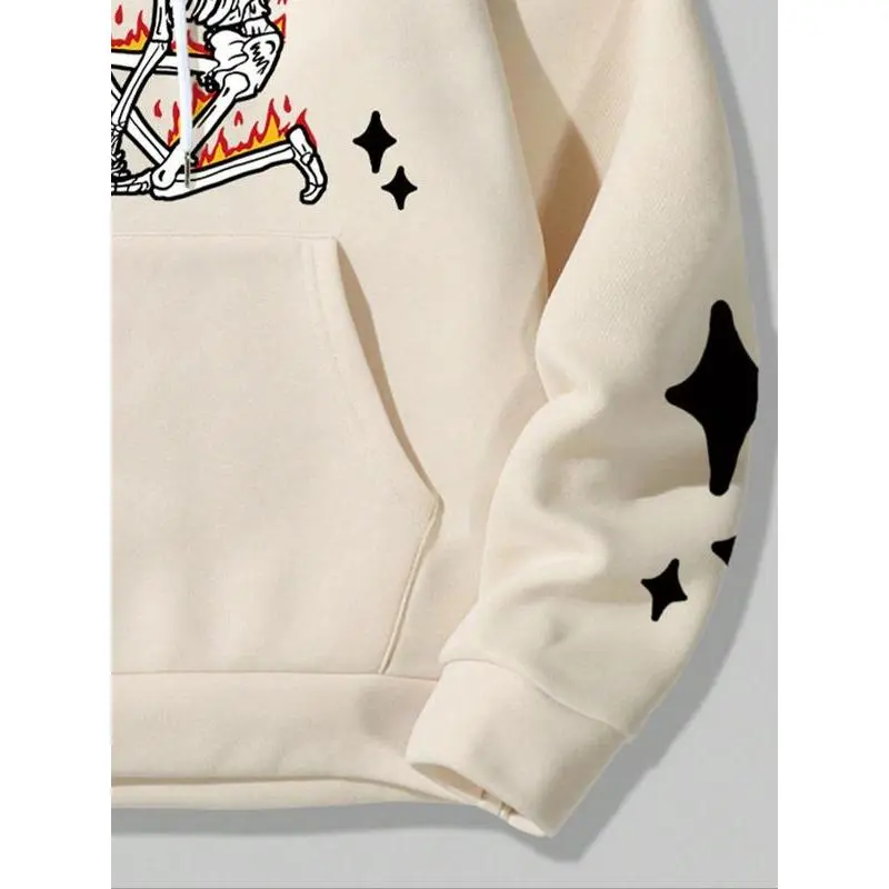 Men's Skull Print Drop Shoulder Hoodie, Fashion Casual Regular Fit Drawstring Pocket Hooded Sweatshirt for Daily Holiday Outdoor Wear, Men Clothes for Spring & Fall
