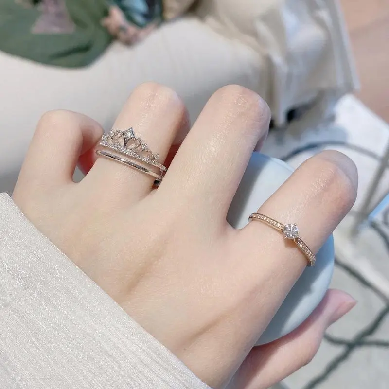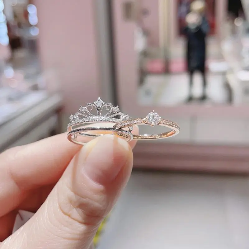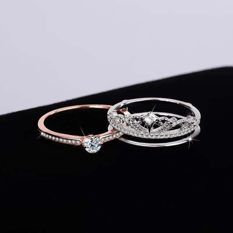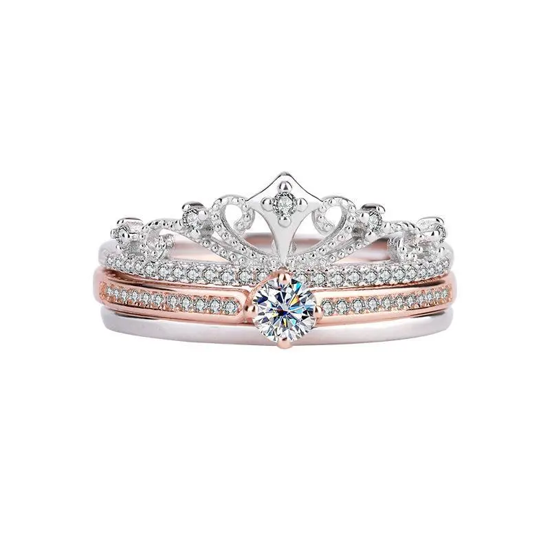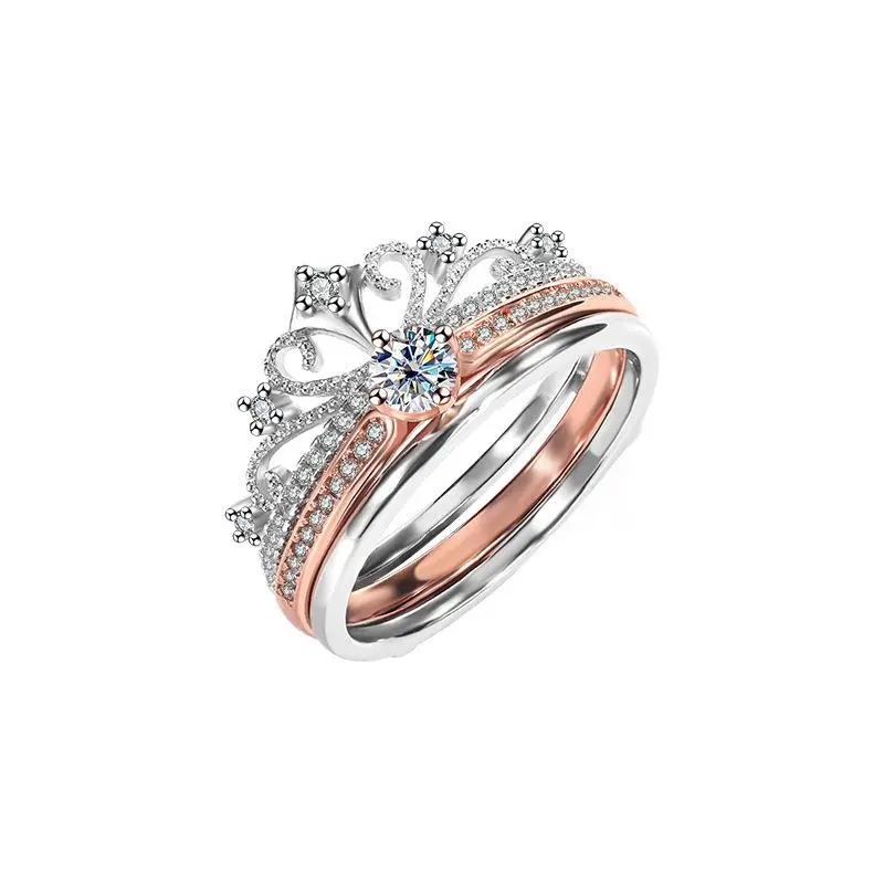 Moissanite Crown Wedding Ring for Women ,Eternity Stacked Synthetic Moissanite Ring for Engagement Anniversary Jewelry