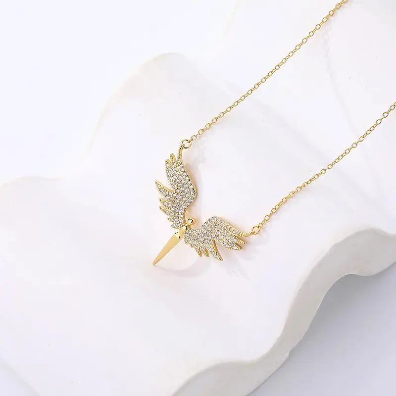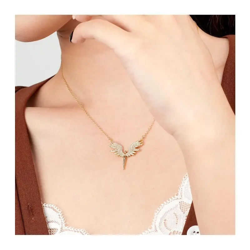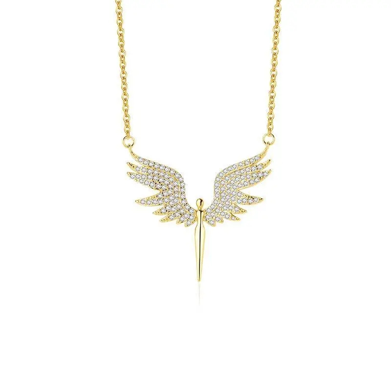 Sterling Silver Accessible Luxury Inlaid Zircon Angel Wings Necklace for Women Fashionniche Style Design Clavicle Chain