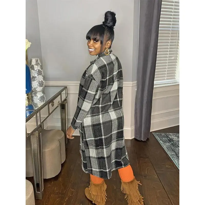 ��Split Hem Feature��: Elevate your daily outfits with the button front split hem, offering a unique twist to the traditional overcoat silhouette. ��Plaid Pattern��: Sport a classic look with the timeless plaid print, perfect for adding a touch of sophistication to your fall and winter wardrobe. ��Drop Shoulder Sleeves��: Experience added comfort and a relaxed fit with the drop shoulder sleeves, ideal for effortless layering during cooler months. ��Machine Washable��: Enjoy the convenience of easy care with this machine washable overcoat, ensuring it remains a go-to in your collection for seasons to come. ��Jersey Elastane Material��: Benefit from the jersey elastane fabric that offers a gentle stretch, providing a comfortable fit while maintaining its shape.