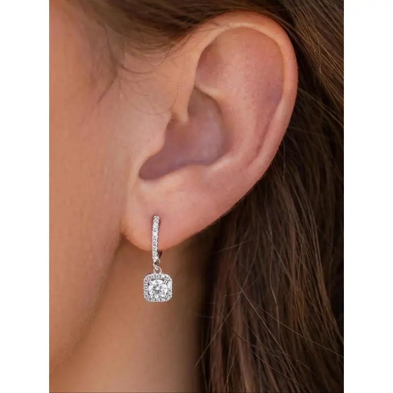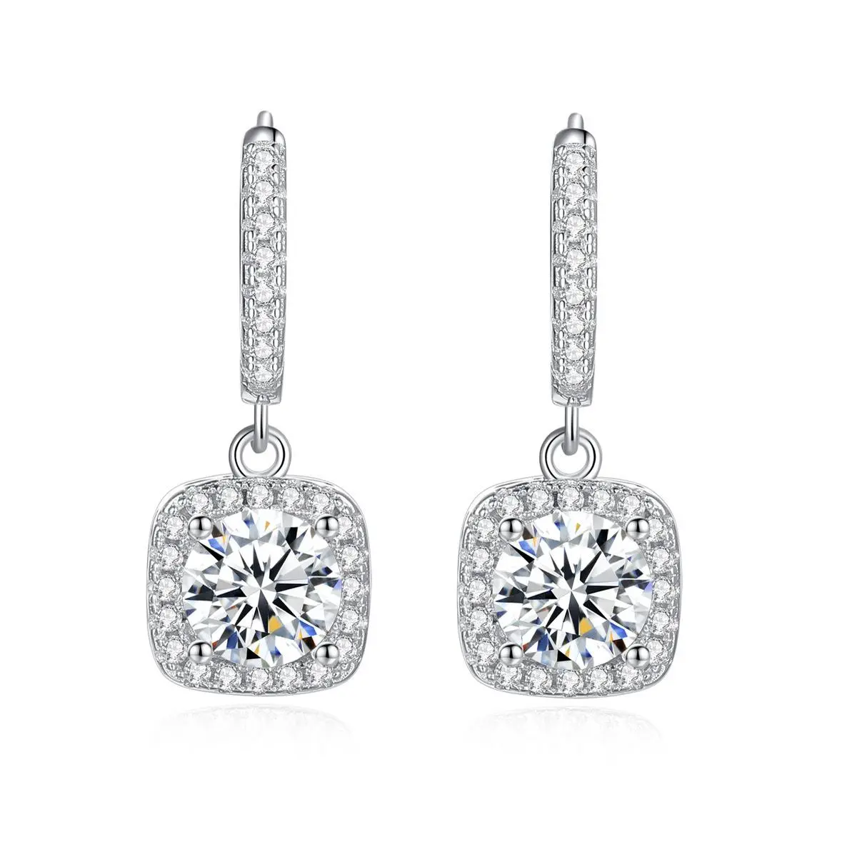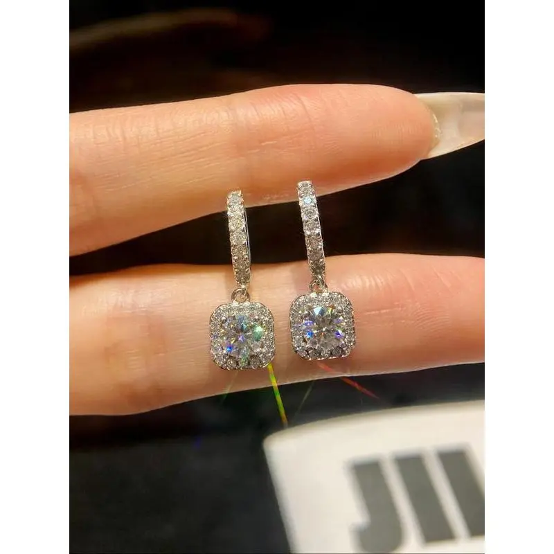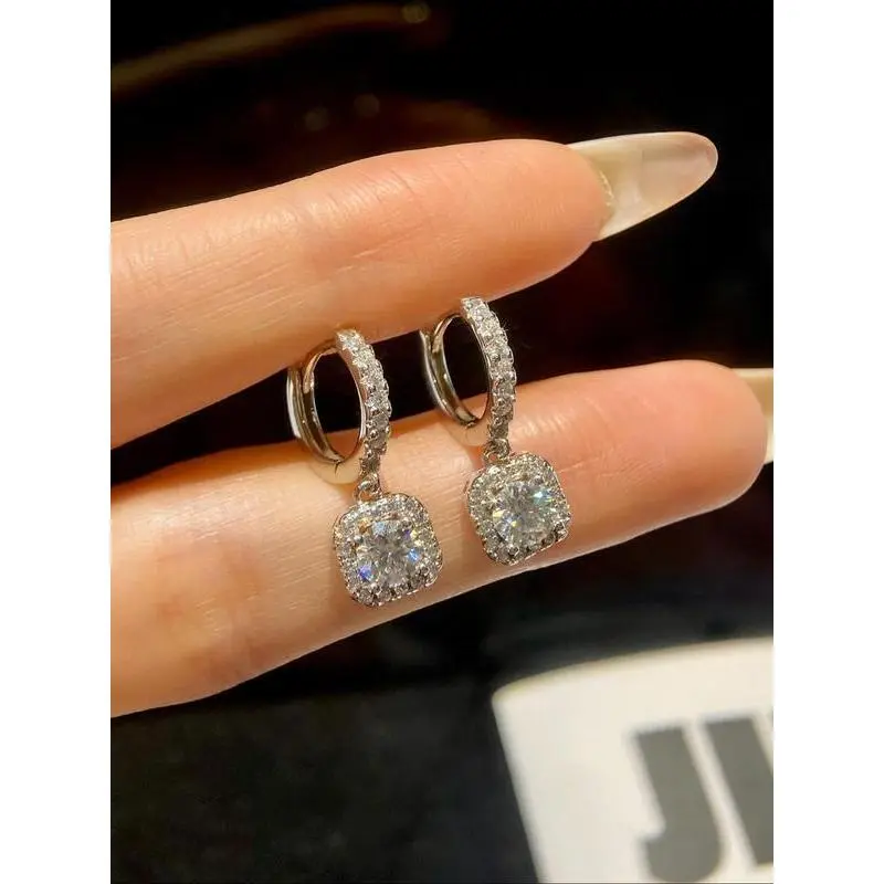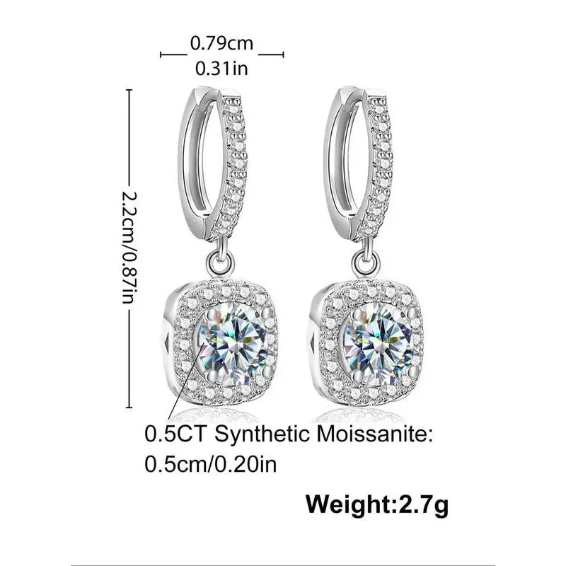 S925 Sterling Silver Square Shaped Earrings, 0.5ct Synthetic Moissanite Earrings, Fashion Jewelry Accessories for Women & Girls