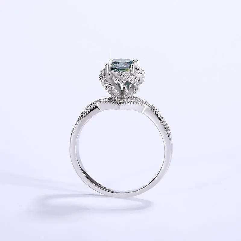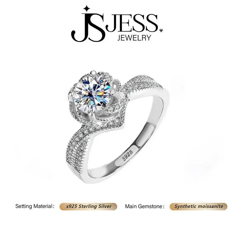 ��#119��1ct Round Brilliant Real Synthetic Moissanite Ring S925 Sterling Silver Jewelry D Color VVS1 Clarity