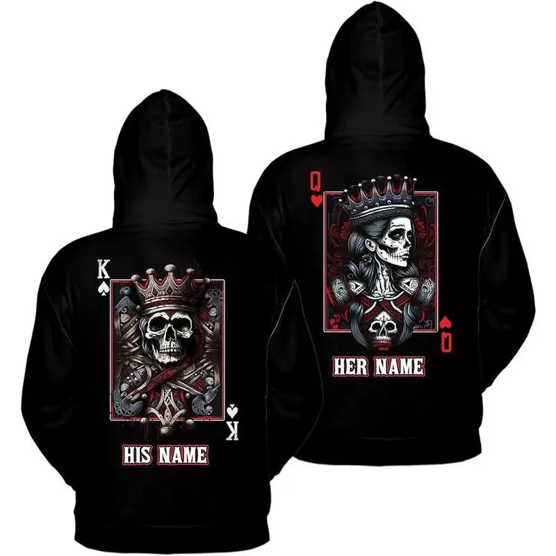 PersonalizedSkullTarotCardCoupleHoodie2DS-5XL,SkeletonMatchingCoupleHoodie,customcouplematchingoutfits,personalizedskeletoncouplehoodie