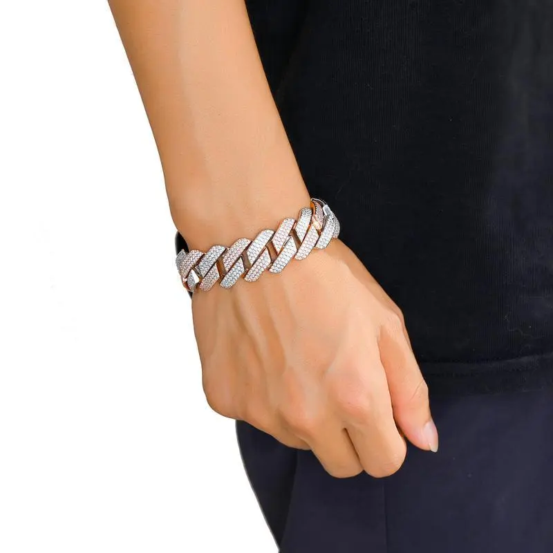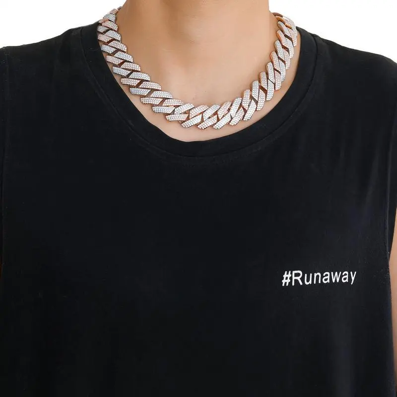 Hip Hop Necklace 20mm Three Rows Two tone Cuban Chain Men's Personalized Necklace