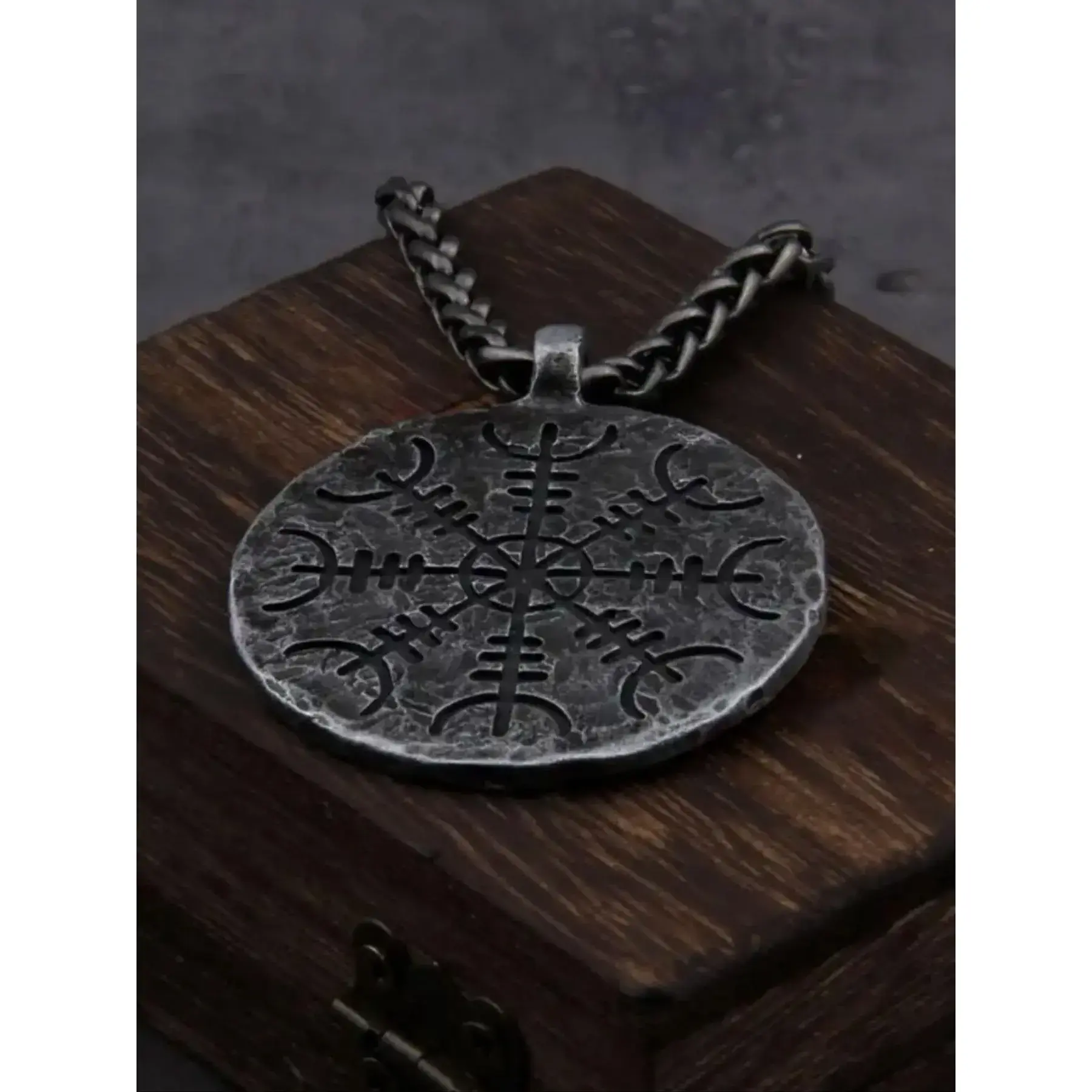 Vintage Viking Rune Detail Pendant Matching Necklace, Suitable for Girlfriends, Zinc Alloy Jewelry Accessories, Gothic Men's and Women's Accessories, Gothic Witch Jewelry