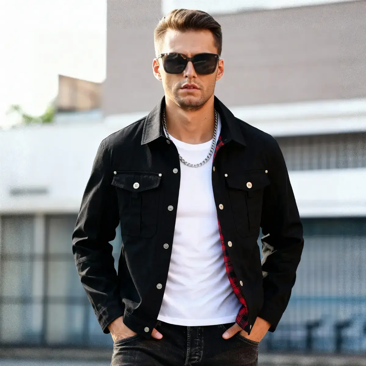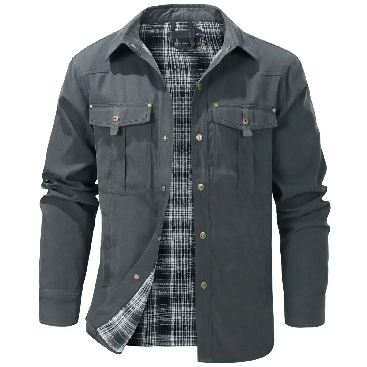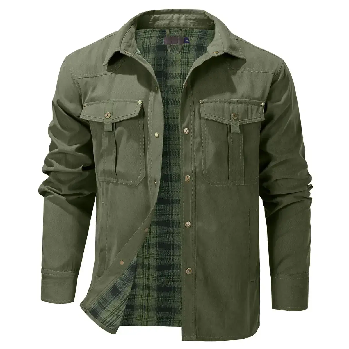 🌟 Men’s Utility Shirt Jacket with Plaid Lining