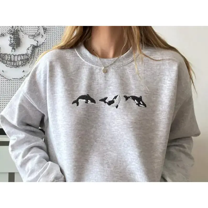 Embroidered Trio of Orcas Sweatshirt, Embroidered Orcas Sweatshirt, Orcas Shirt, Orca Whale Shirts, Ocean Shirts, Fish Shirts, Marine Shirts