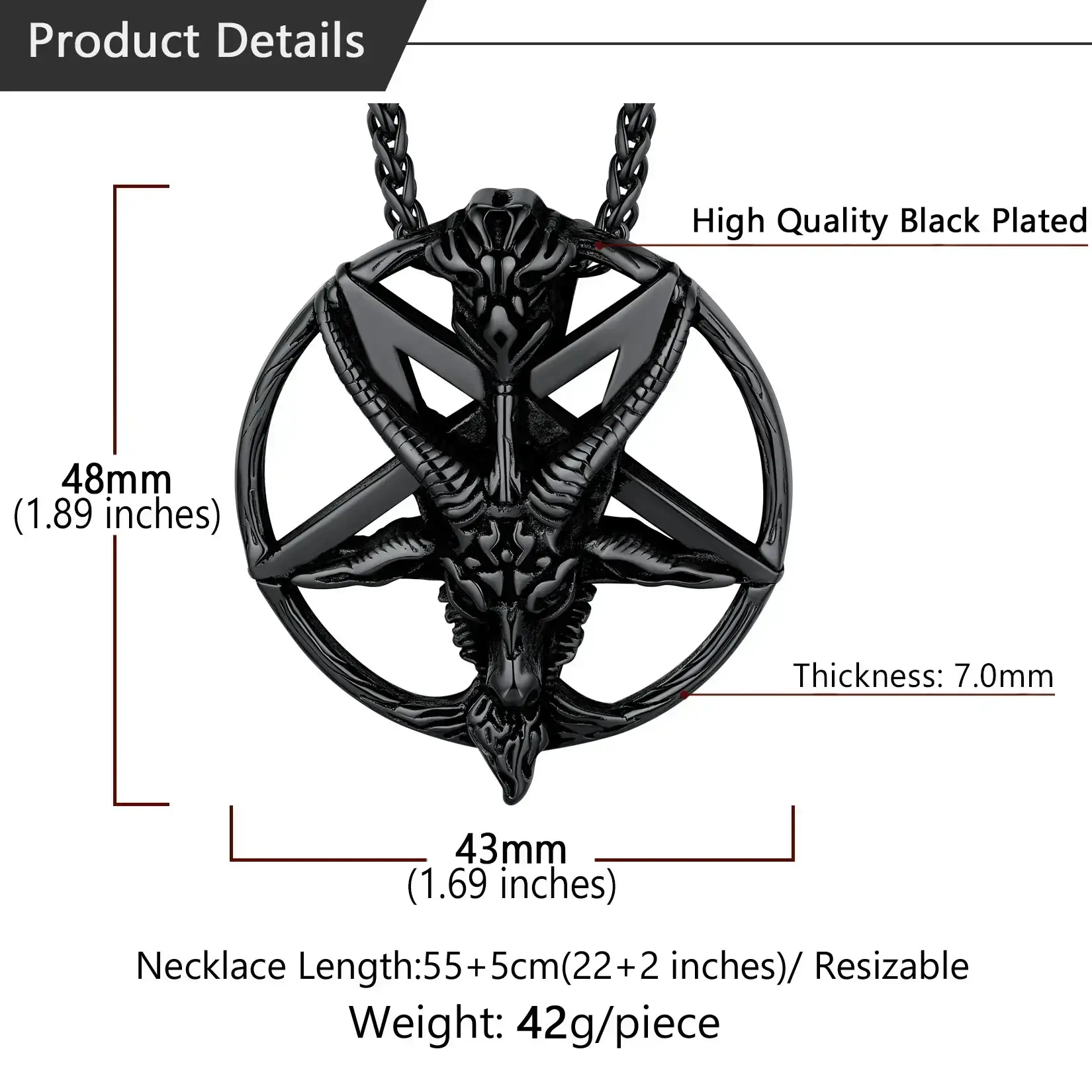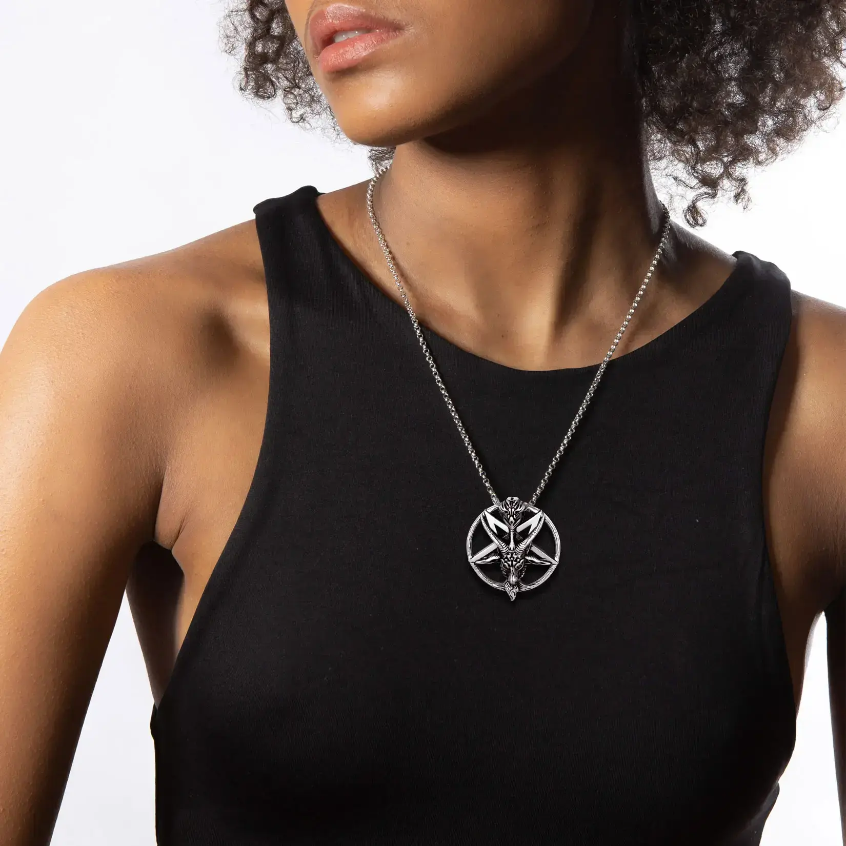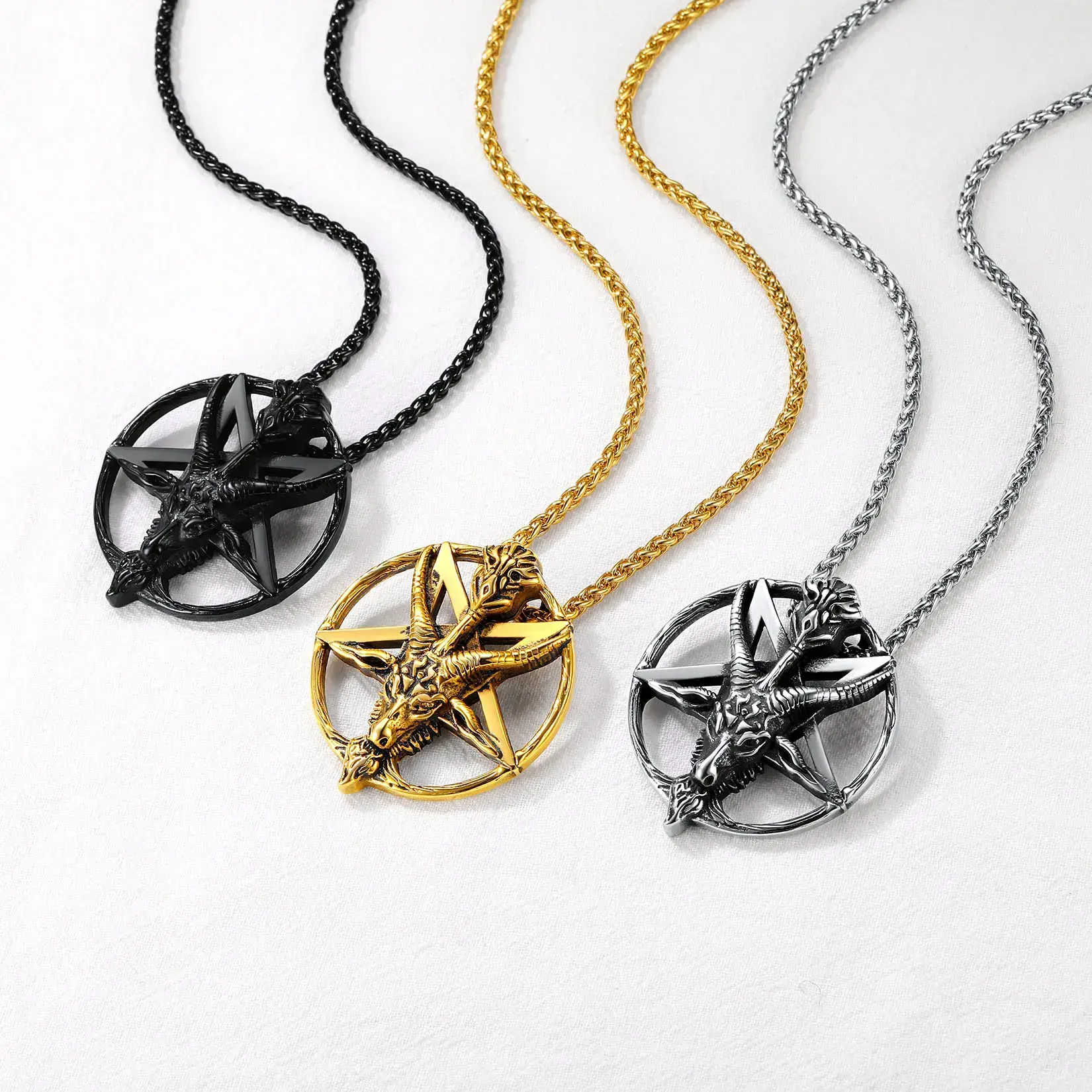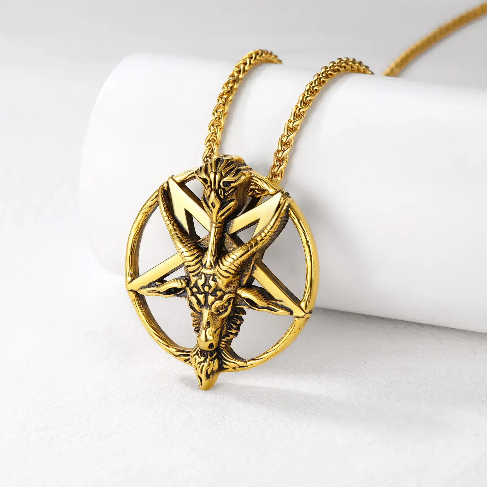 Five cornered goat head pendant necklace