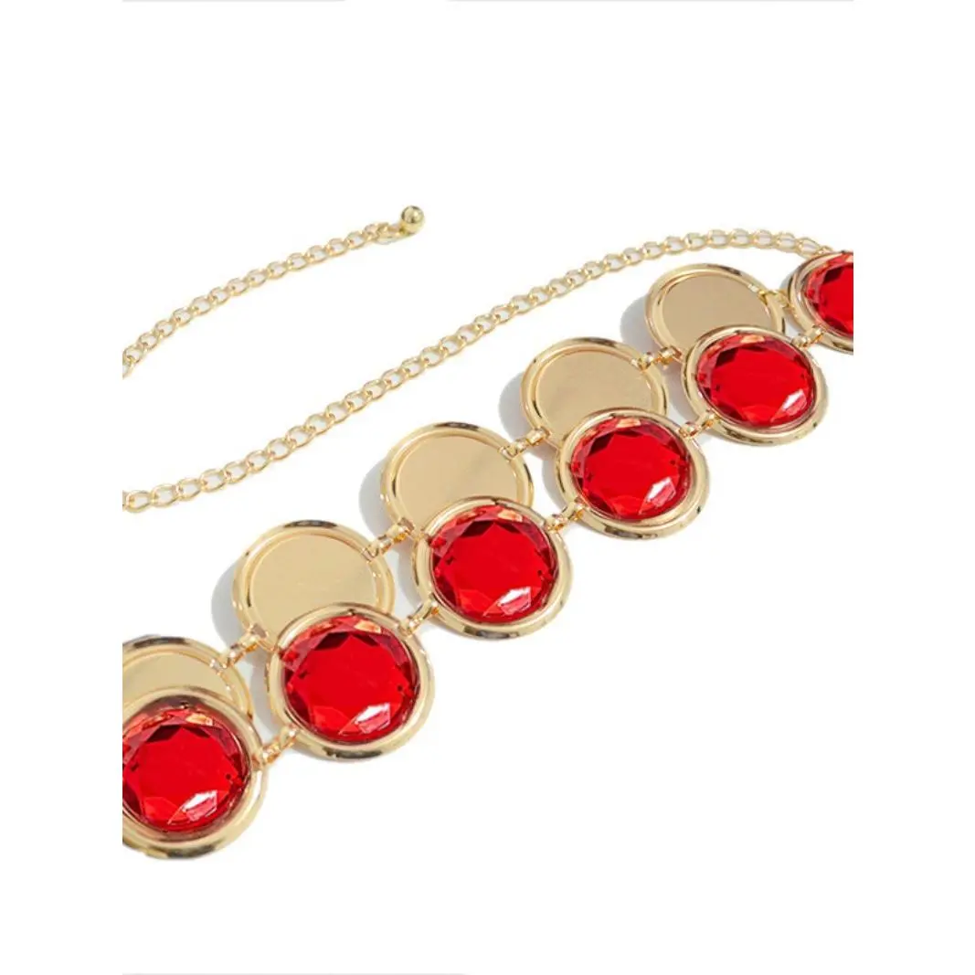 Red Gem Waist Belt Anime Cosplay Stone Chain Western Belt, Adjustable Halloween Rhinestone Belt Costume for Women Halloween Cosplay Props Accessories