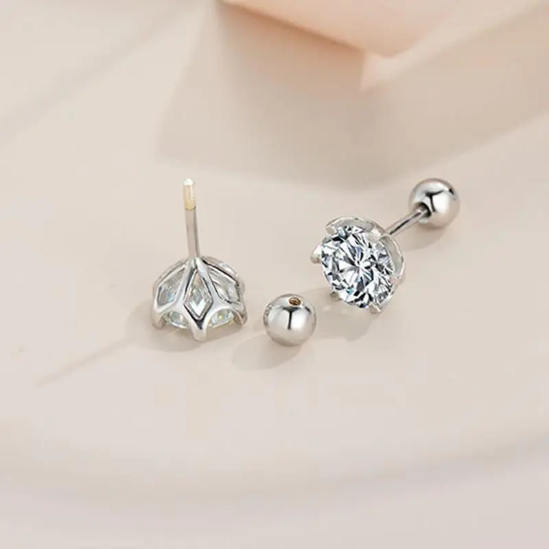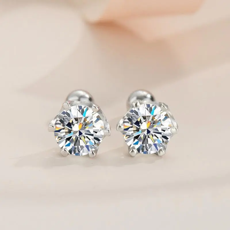 [259] 0.3/0.5/1CT Synthetic Moissanite Stud Earring Scew-back Design S925 Sterling Silver Jewelry Earrings Elegant Luxury Style Anniversary Christmas Gift