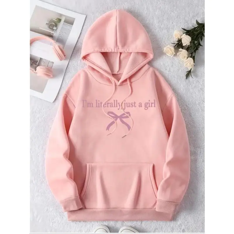I'm Literally Just A Girl Graphic Hoodie Unisex, Coquette Pink Bow Tops Collection for Women for Men