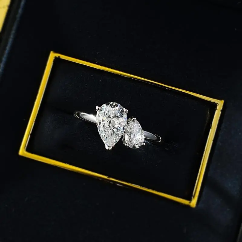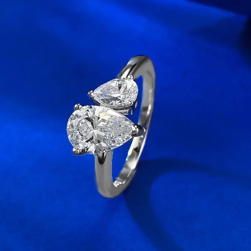 S925 Sterling Silver Ice Flower Cut Double Pear-Shaped Ring 6 * 9mm 8A Cubic Zirconia Ring fashion jewelry accessory woman girl promise ring-387