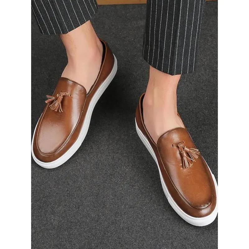 Men's Fashionable Tassel Decor Slip on Loafers, Casual Comfortable Round Toe Thick Sole Loafers for Daily Wear, All-match Commuter Shoes for Work & Daily Wear