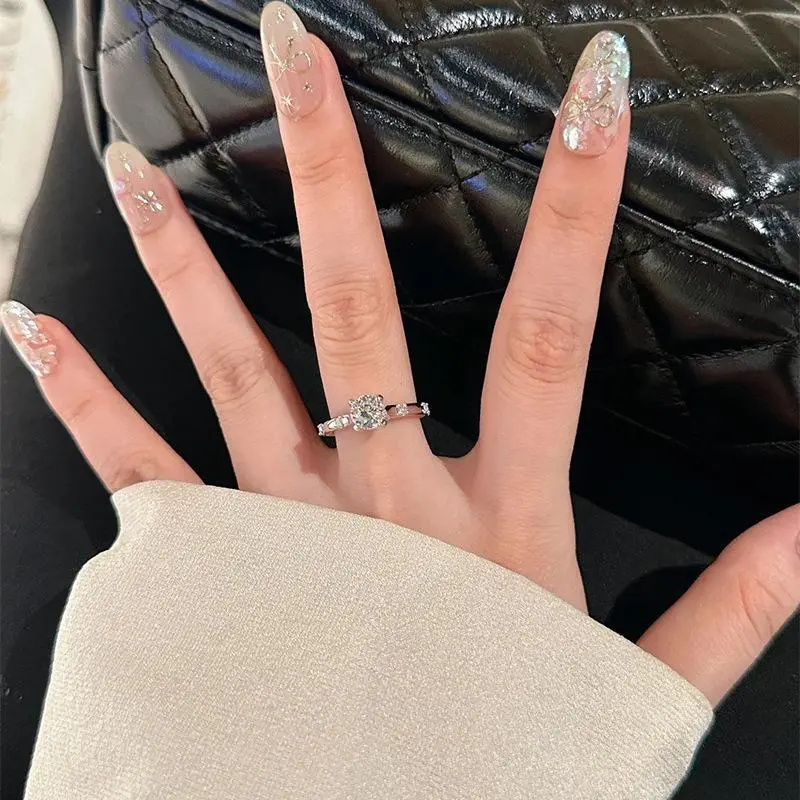 ��#1109 Starry Enchantment��1ct Round Brilliant Real Synthetic Moissanite Ring S925 Sterling Silver Jewelry D Color VVS1 Clarity