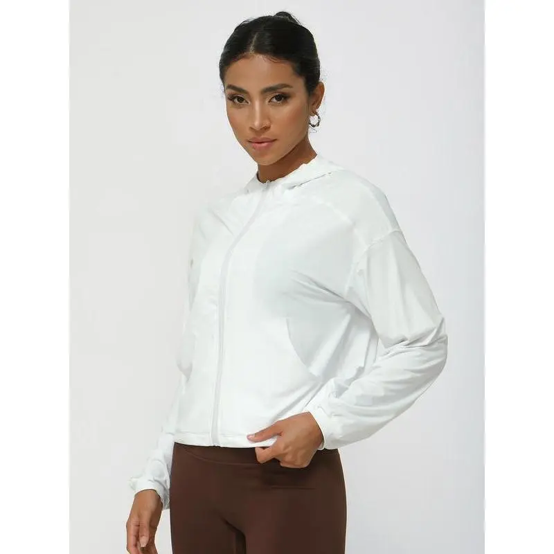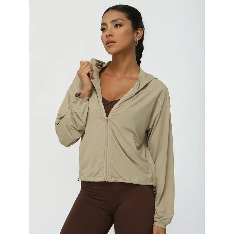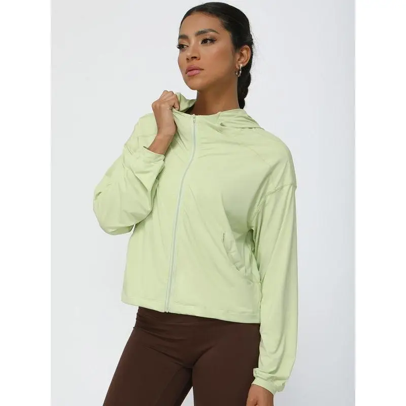 Women's Solid Color Hooded Sports Jacket, Quick Drying Breathable Sports Outerwear, Ladies Sportswear for Yoga Running