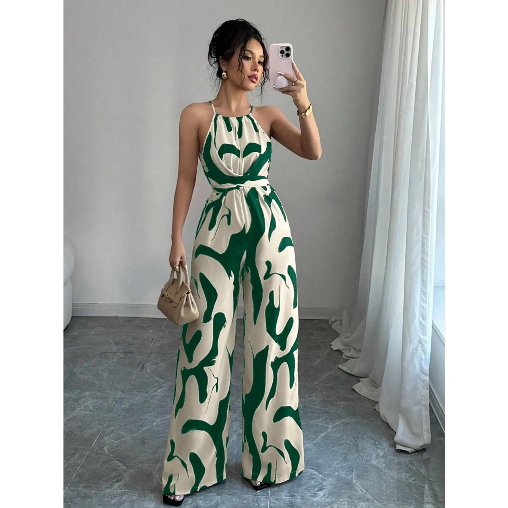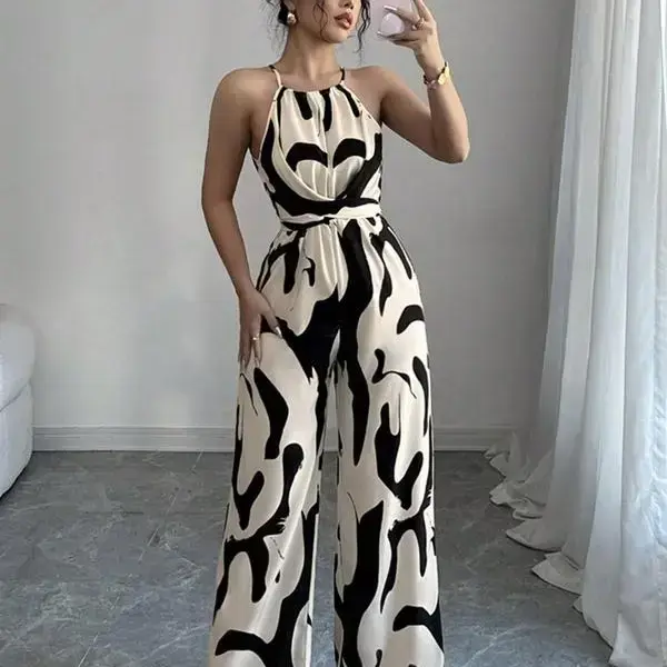 Women's Abstract Print Overalls Jumpsuit, Elegant Fashion Casual Jumpsuit for Daily Outdoor Wear, Women Jumpsuits for All Seasons