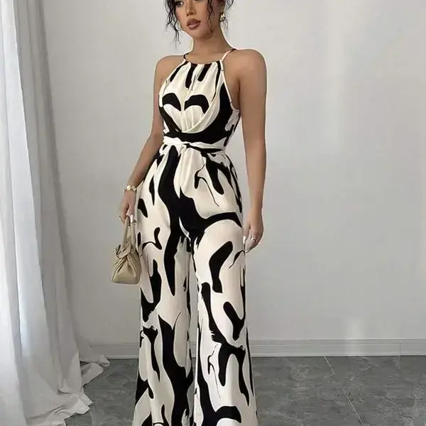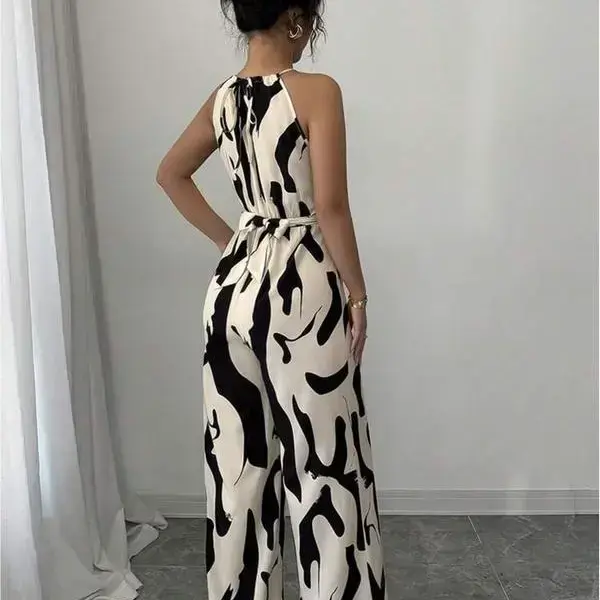 Women's Abstract Print Overalls Jumpsuit, Elegant Fashion Casual Jumpsuit for Daily Outdoor Wear, Women Jumpsuits for All Seasons Womenswear Sleeveless