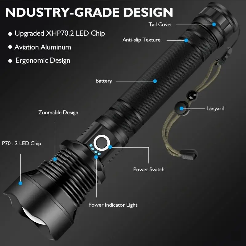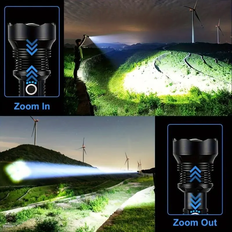flashlight1pcUSBRechargeableLEDFlashlightP70-SuperBrightHigh-PoweredTacticalTorchwith3Modes,AdjustableFocusforOutdoor,Camping,Emergency-PlasticLampShade,18650LithiumBatteryIncludedhandheldflashlight