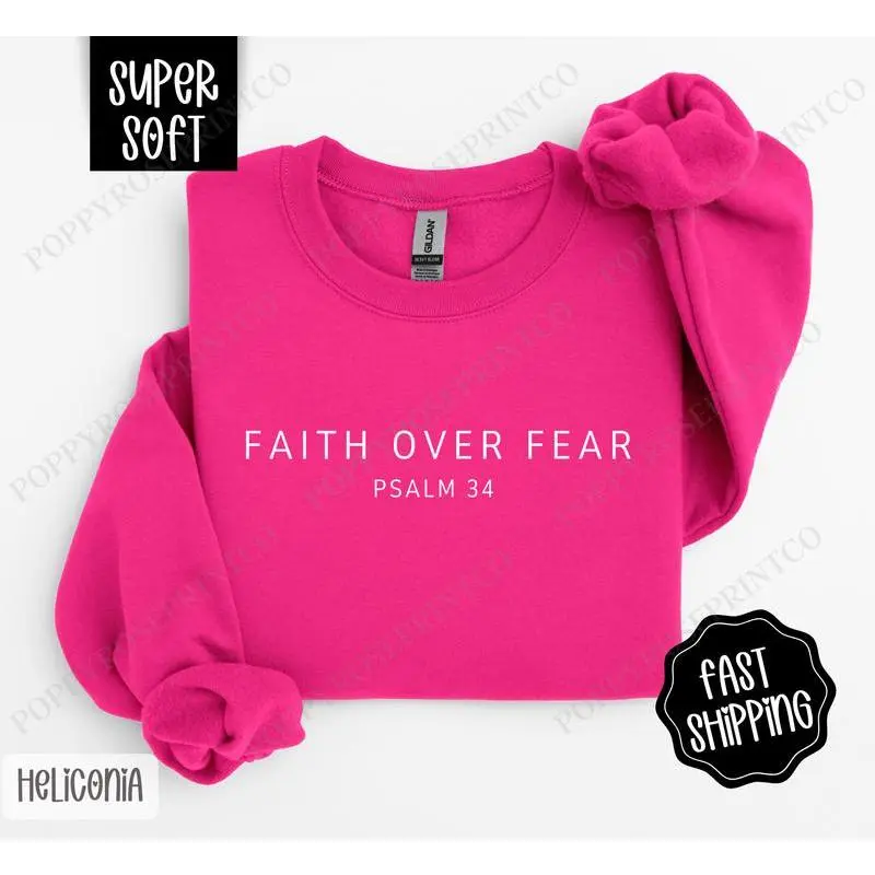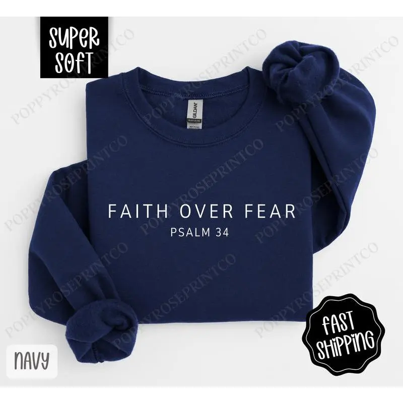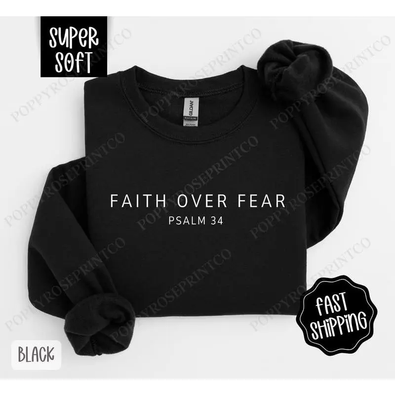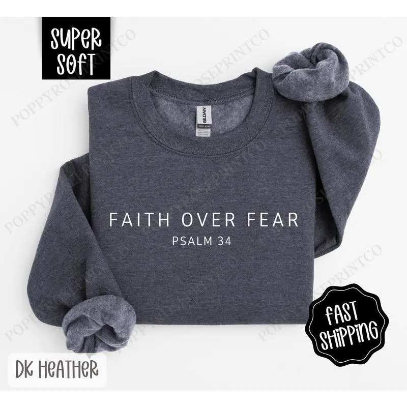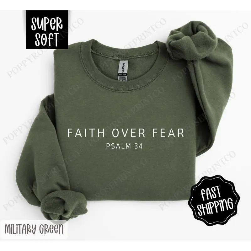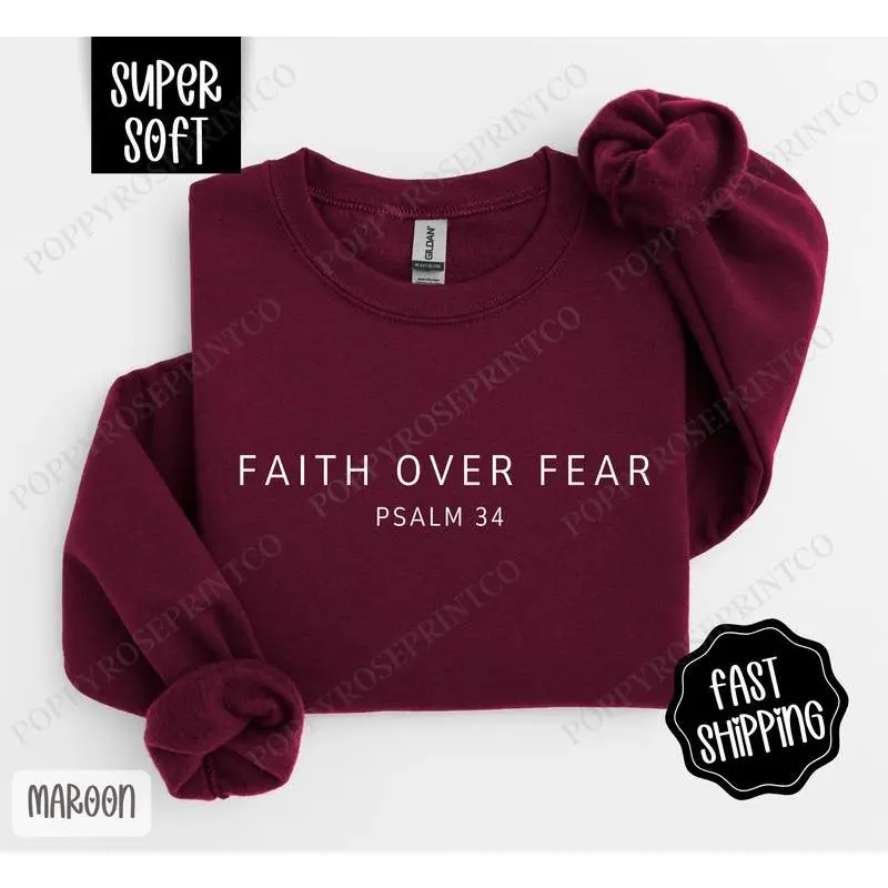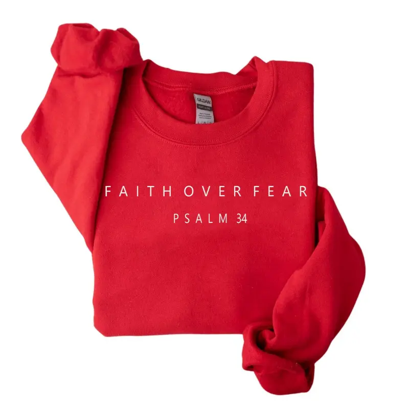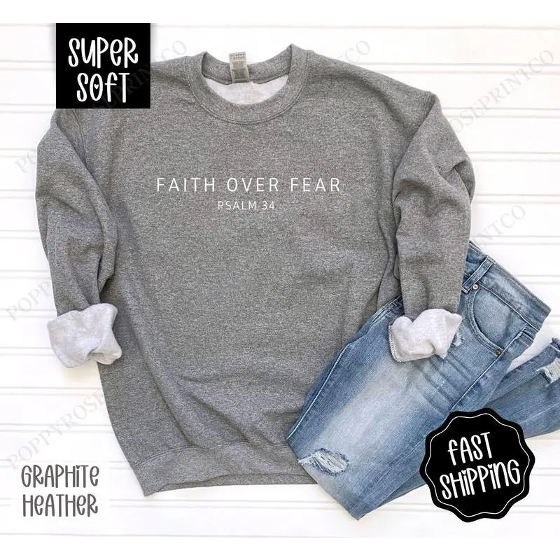 FaithOverFearSweatshirt,ReligiousSweater,CuteWomen'sCrewneck