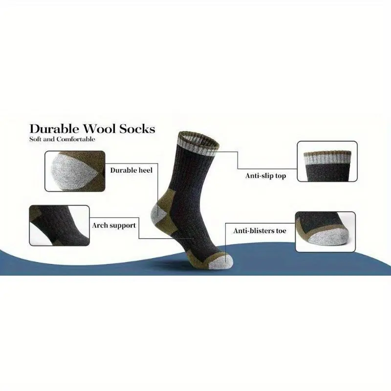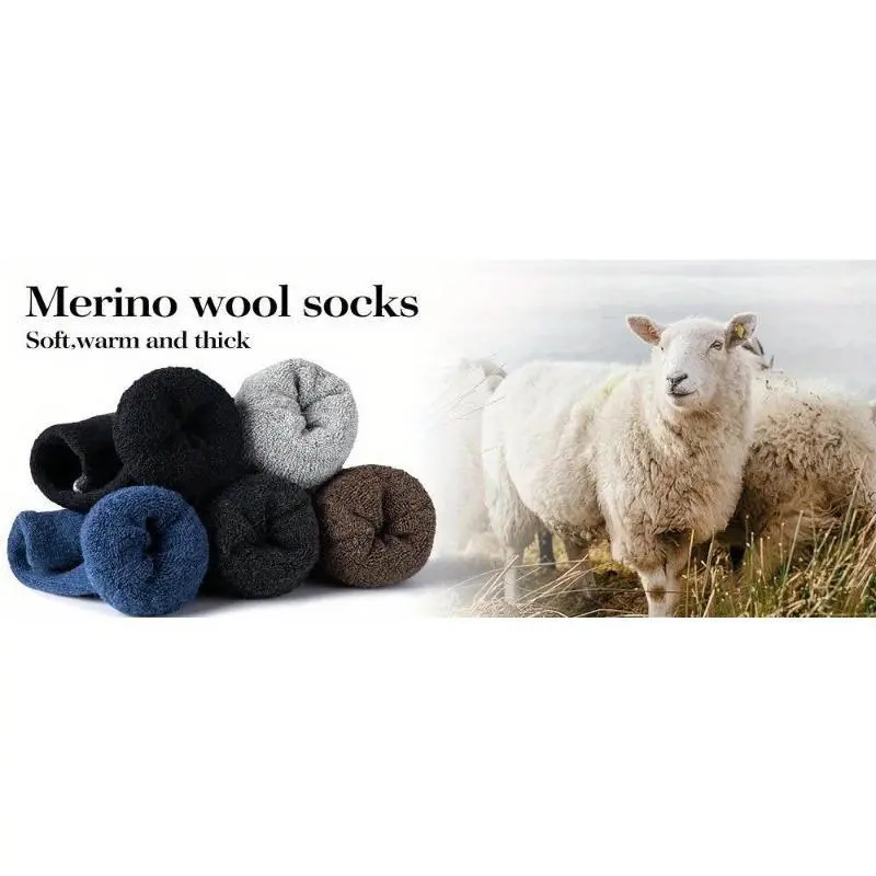 Men's socks 5-Pack Men'S Wool Socks, 100% Wool Knit Fabric, Solid Color, Breathable & Moisture-Wicking, Thick Warm Crew Socks for Indoor and Outdoor Use