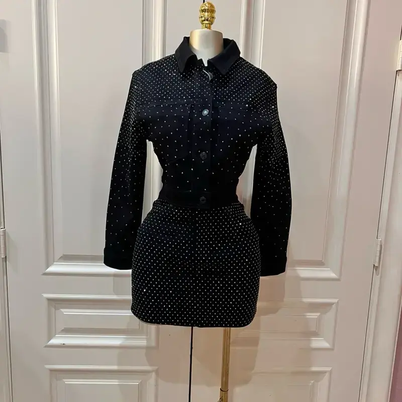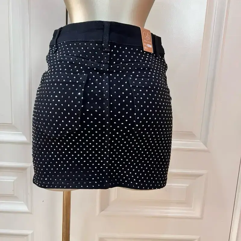 Victoria Rhinestone Skirt Elevate your wardrobe with the Victoria Rhinestone Skirt, a stunning piece that combines elegance and versatility. This skirt features: * Rhinestone All-Over Design: The eye-catching rhinestone detail adds a touch of glamour, making it a standout piece in any outfit. * Stretch Material: Crafted from stretch material, this skirt ensures a comfortable fit that moves with you. Perfect for any occasion, the Victoria Rhinestone Skirt is a must-have addition to your collection.
