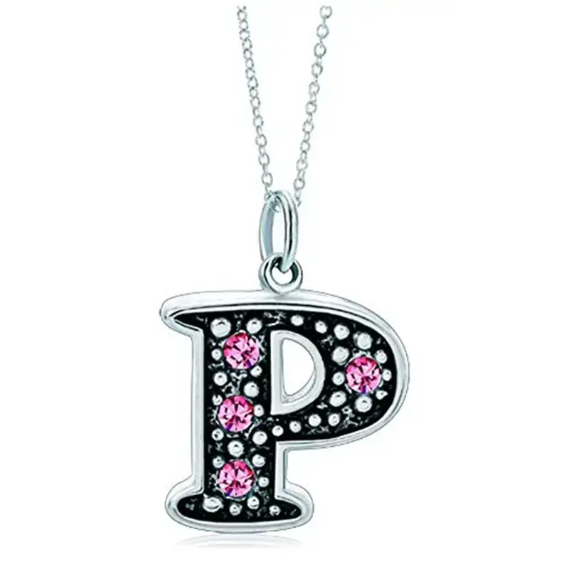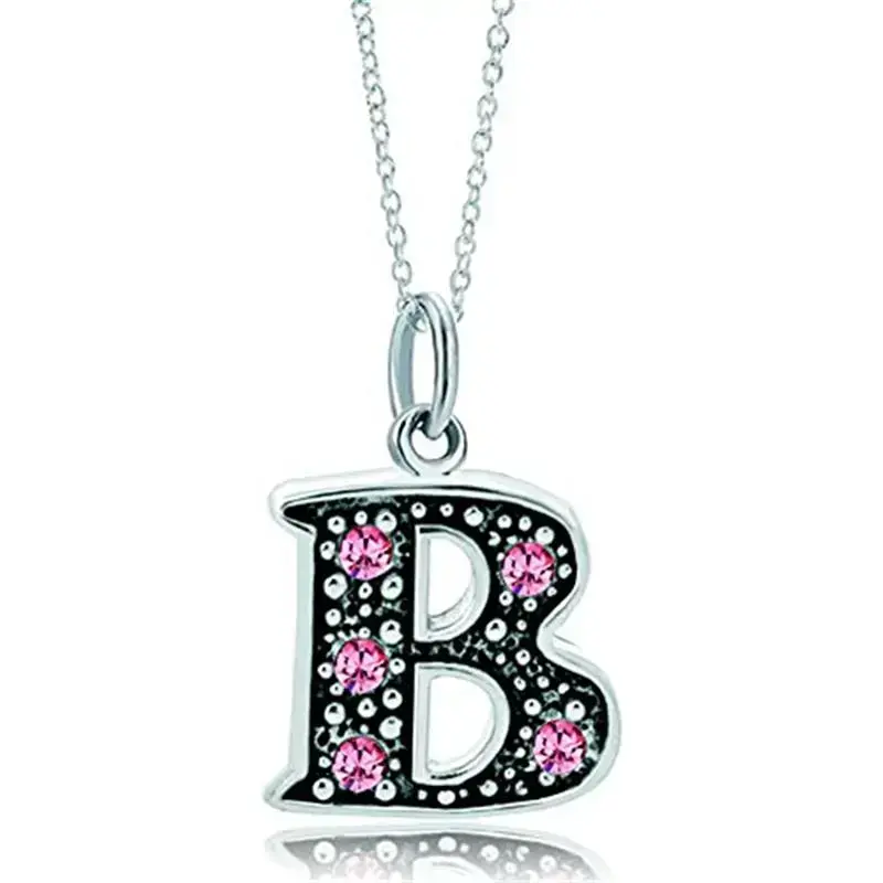 Pink Letter A-Z Alphabet Initial Charms Bead Necklace Pendant