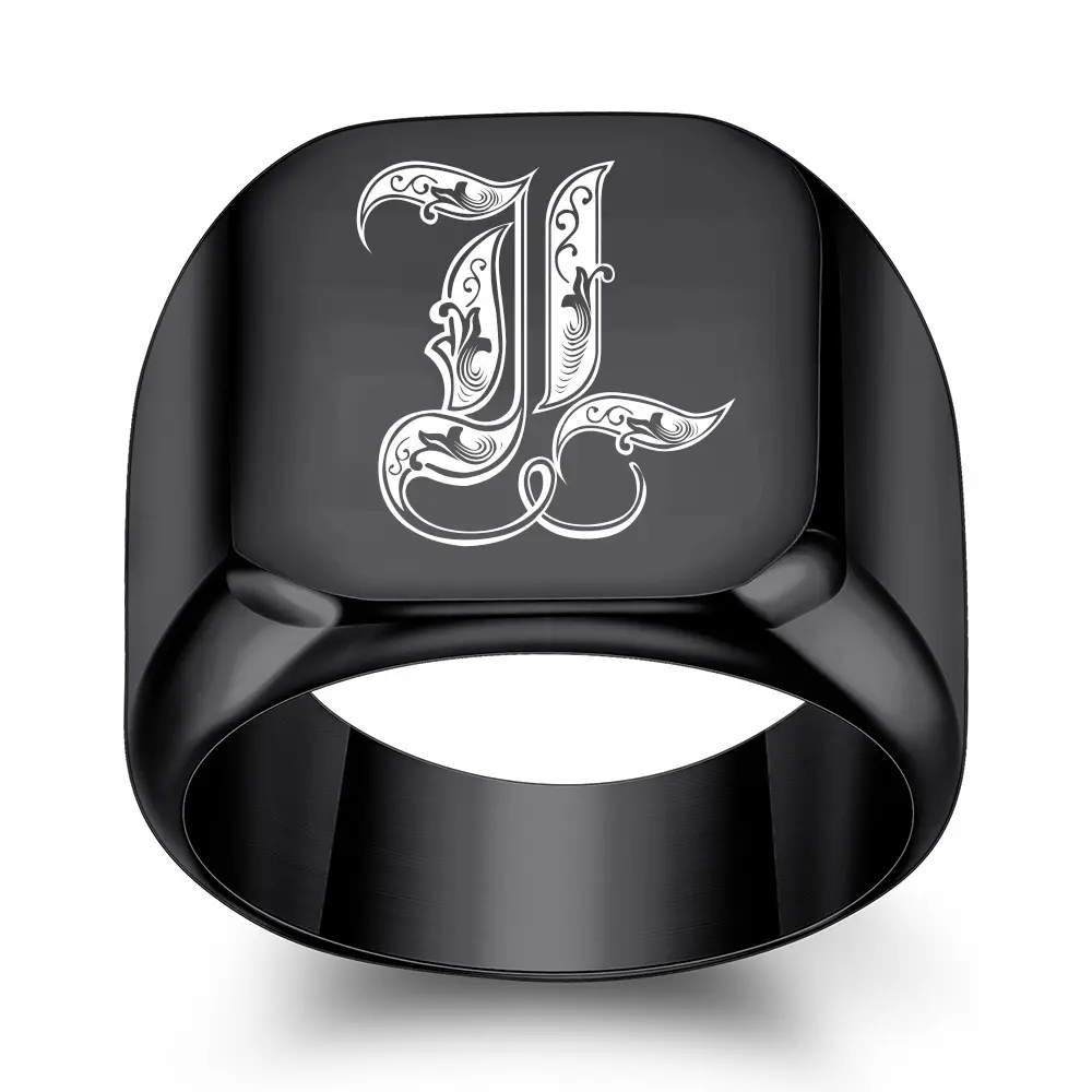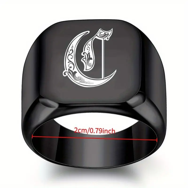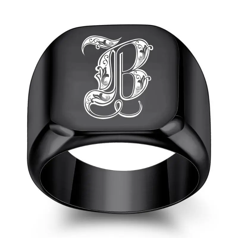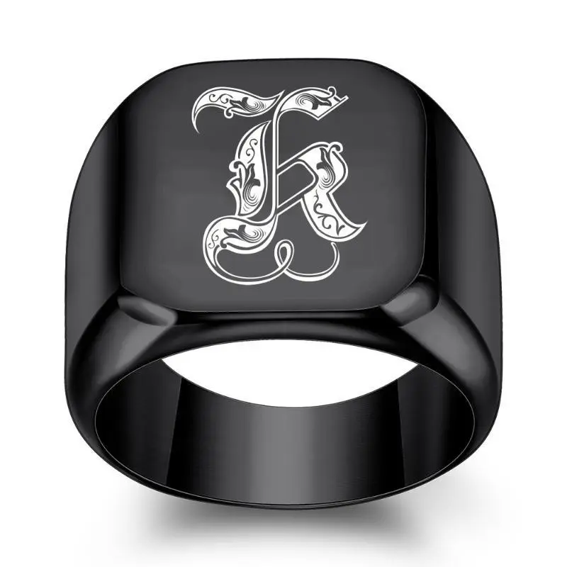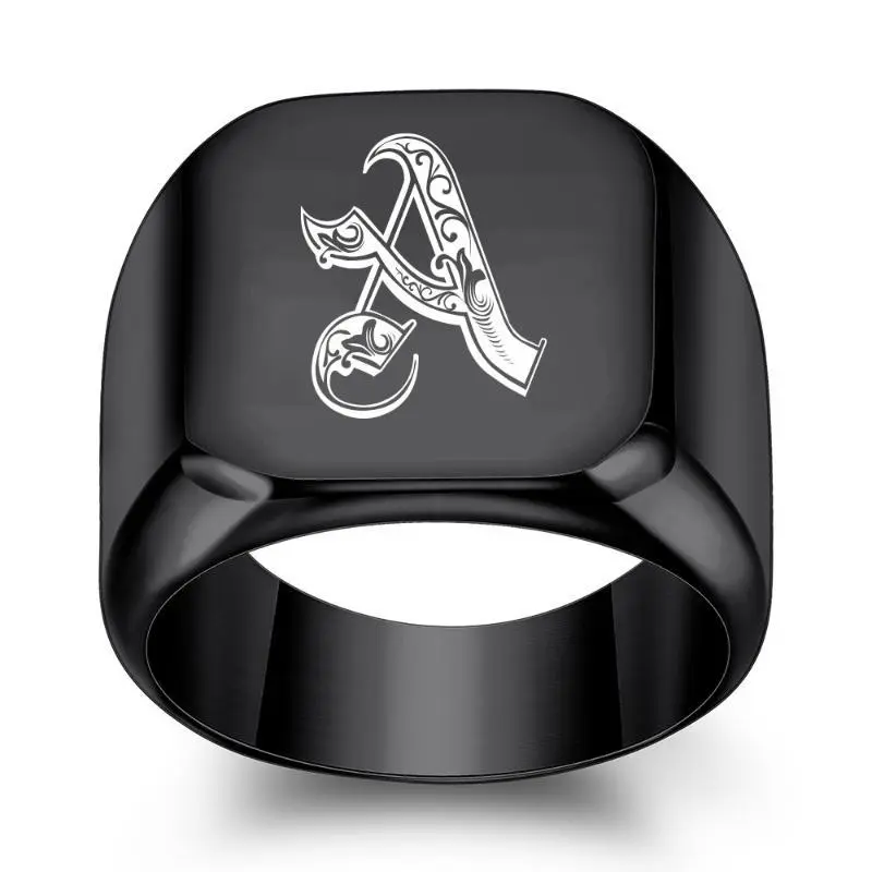 1pc 26 English Initial Letter Titanium Steel Ring Men Retro Punk Square Black Trendy Men ring a-z letter asscher engagement formen