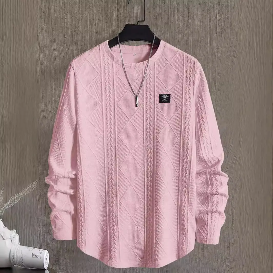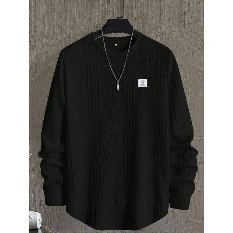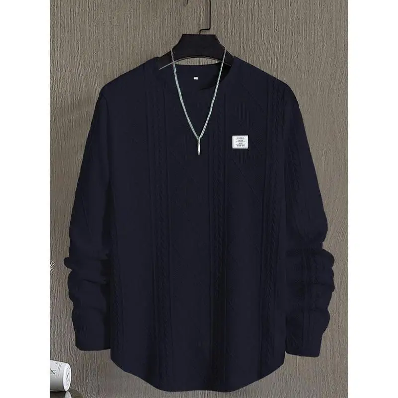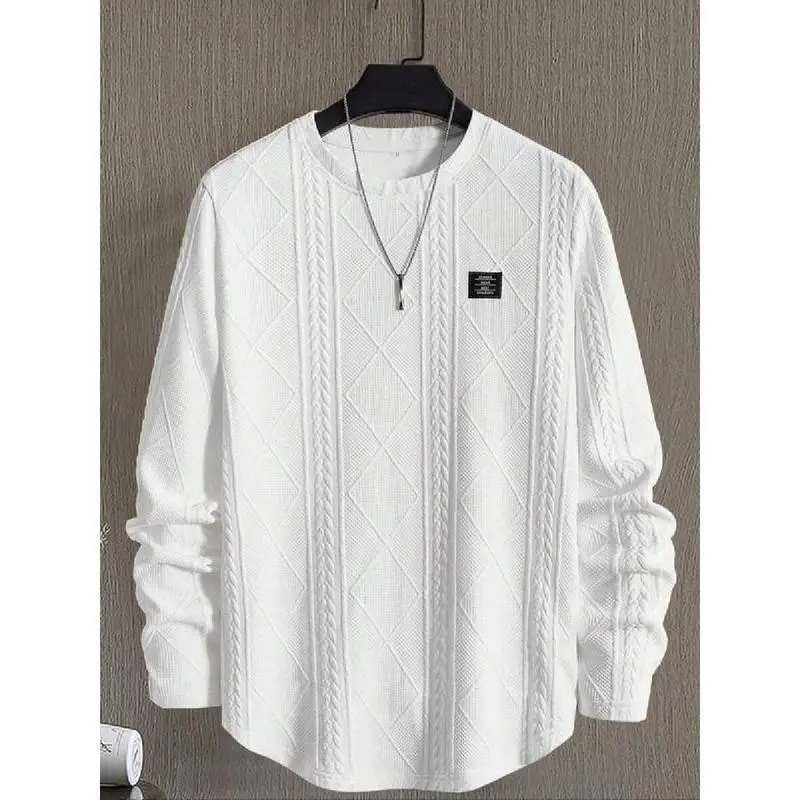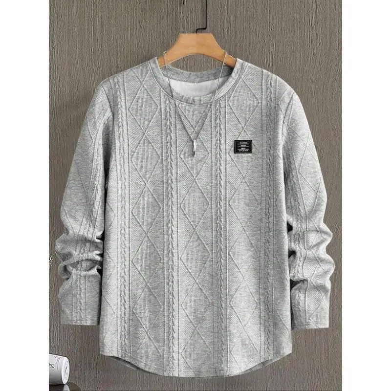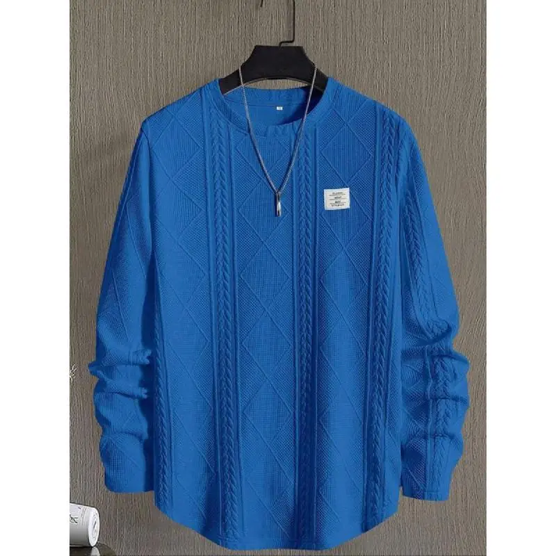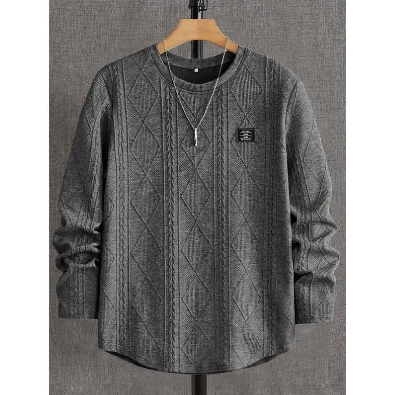 Men's Regular Fit Patched Detail Textured Knit Tops, Knitwear Sweatshirt, Nit Casual Long Sleeve Round Neck T-shirt for All Seasons, T Shirts for Men, Fashion Men's Knit Top for Daily Wear, T Shirts for Men