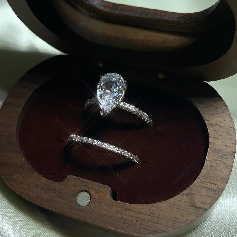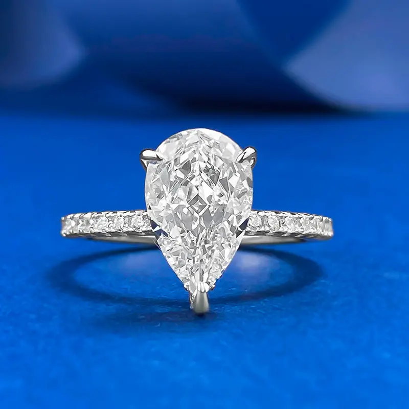 S925 Sterling Silver Pear Shaped Ice Flower Cut Ring 7*11mm 8A Cubic Zirconia Ring fashion jewelry accessory woman girl promise ring Springtok-216
