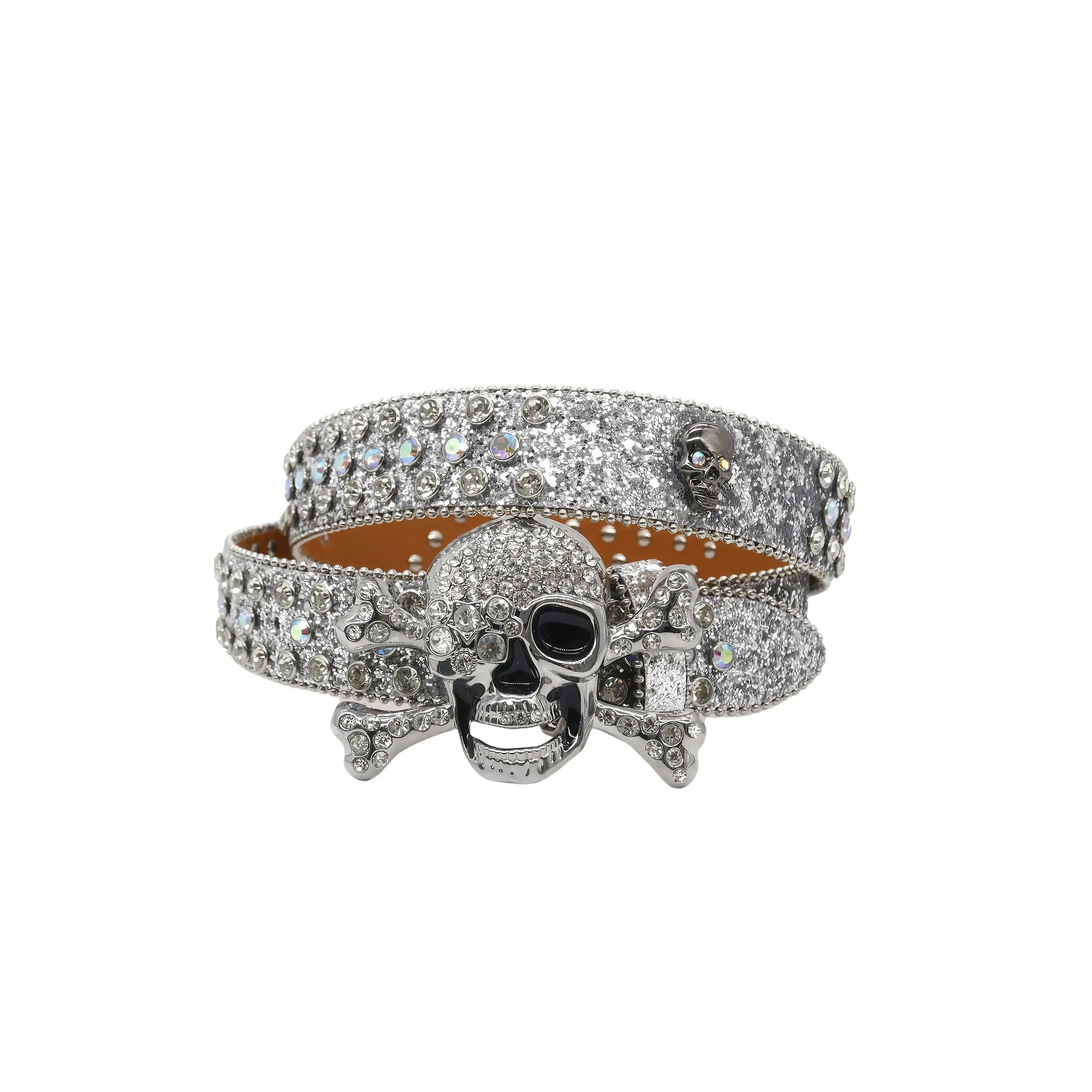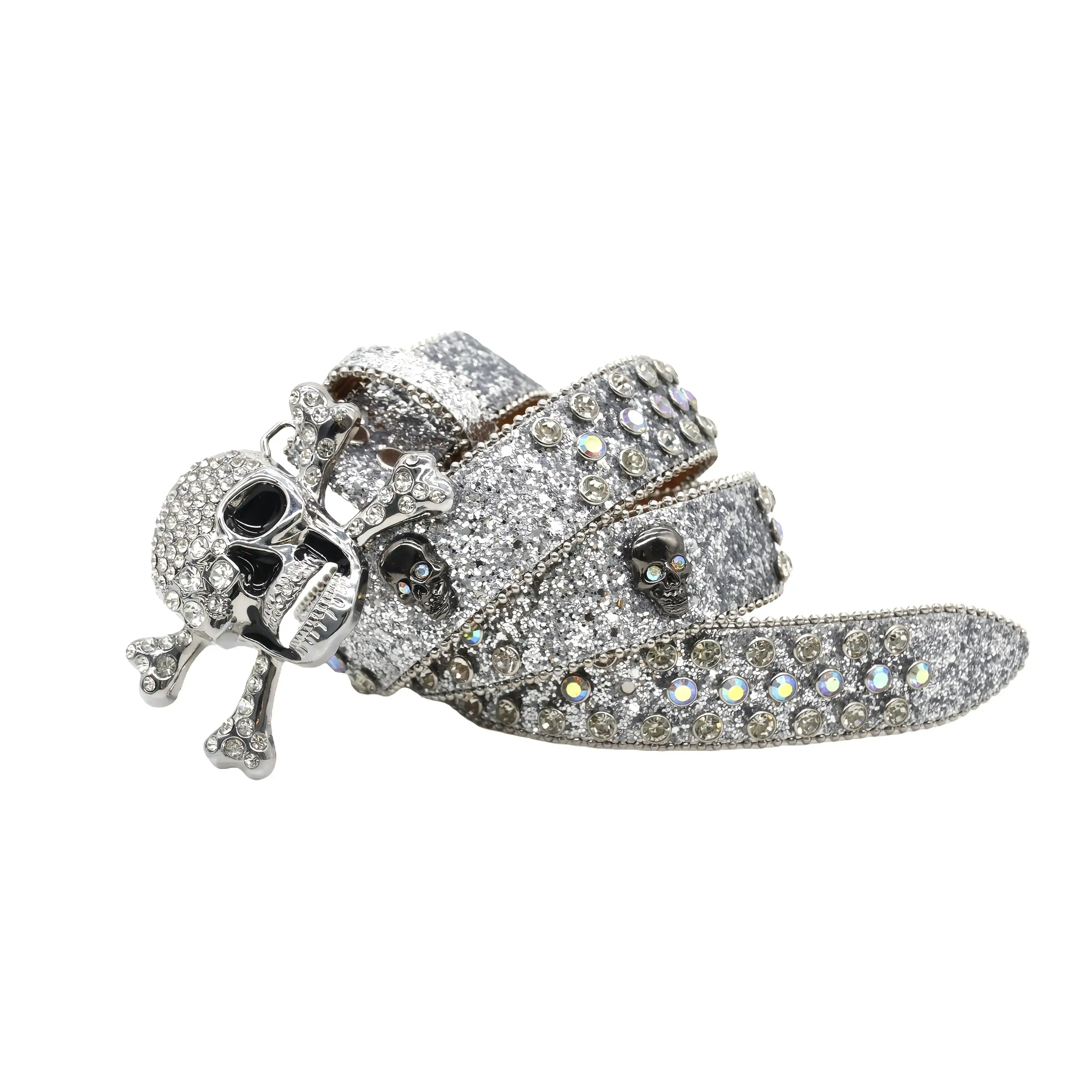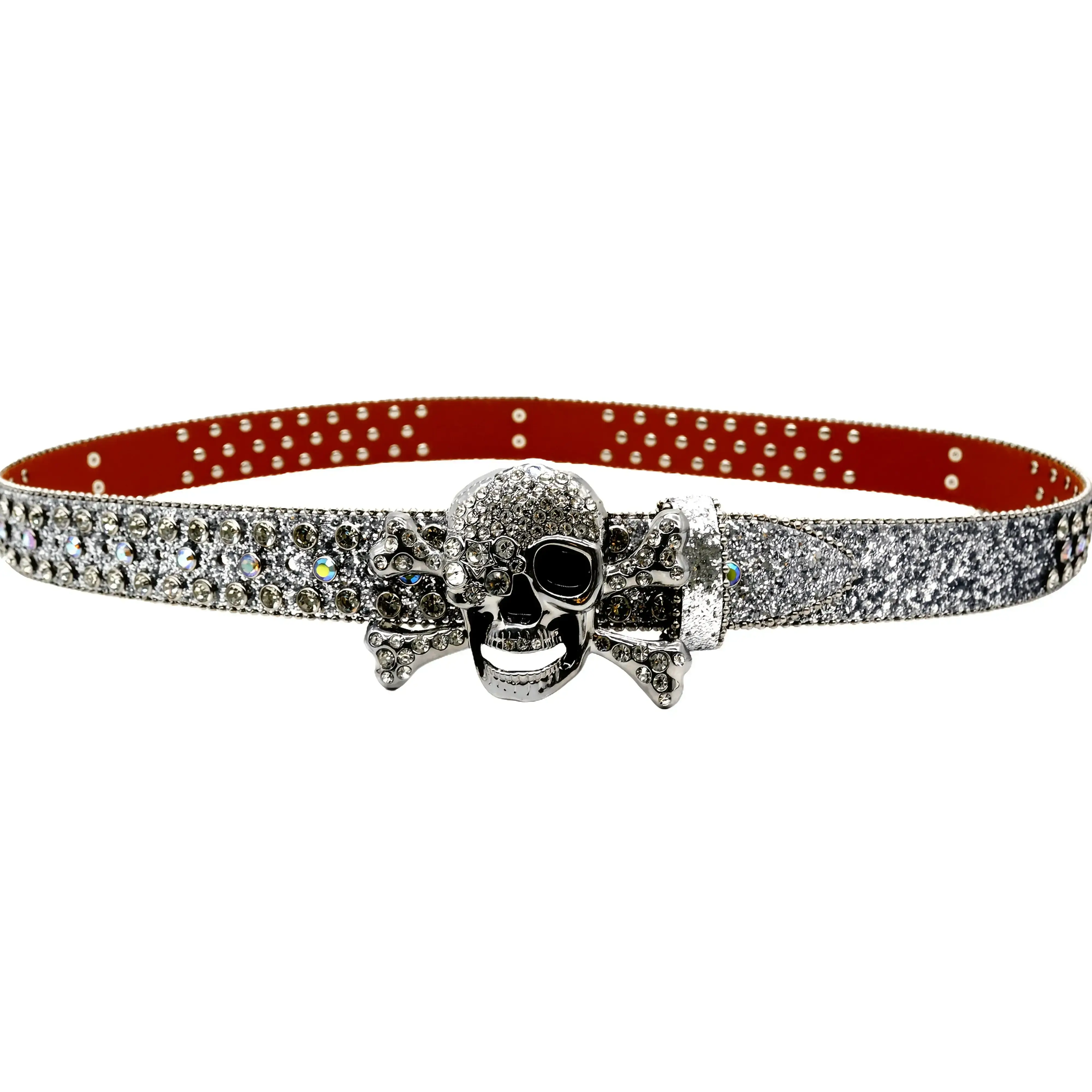 Y2K-Inspired Women's Faux Leather Belt with Rhinestone Skull Buckle - Perfect for Halloween & Party Outfits