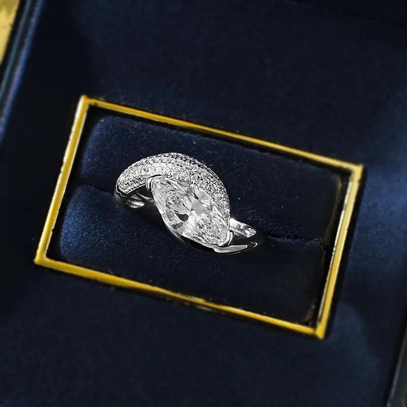 Material: S925 Sterling Silver/ 6A Cubic Zirconia Main Stone type: 6*12mm Ring Size: 5/6/7/8/9 We use high-grade zircon, compare to the low-grade zircon, the high grade zircon has higher dispersion, so the refractive index is stronger, so it is more shiny. And it has higher density, so it is more solid and wear resistant. And our high grade zircon products has great fire color.