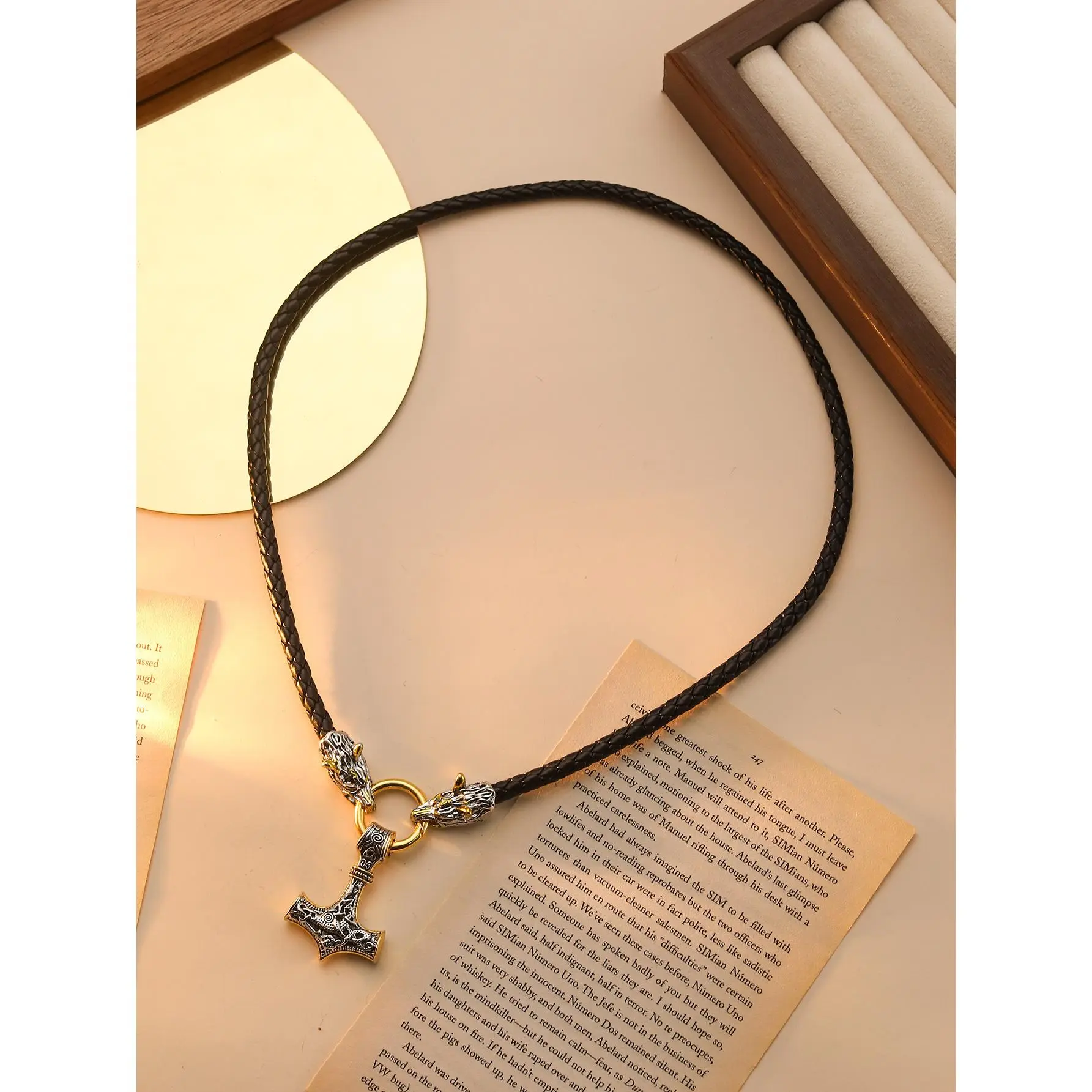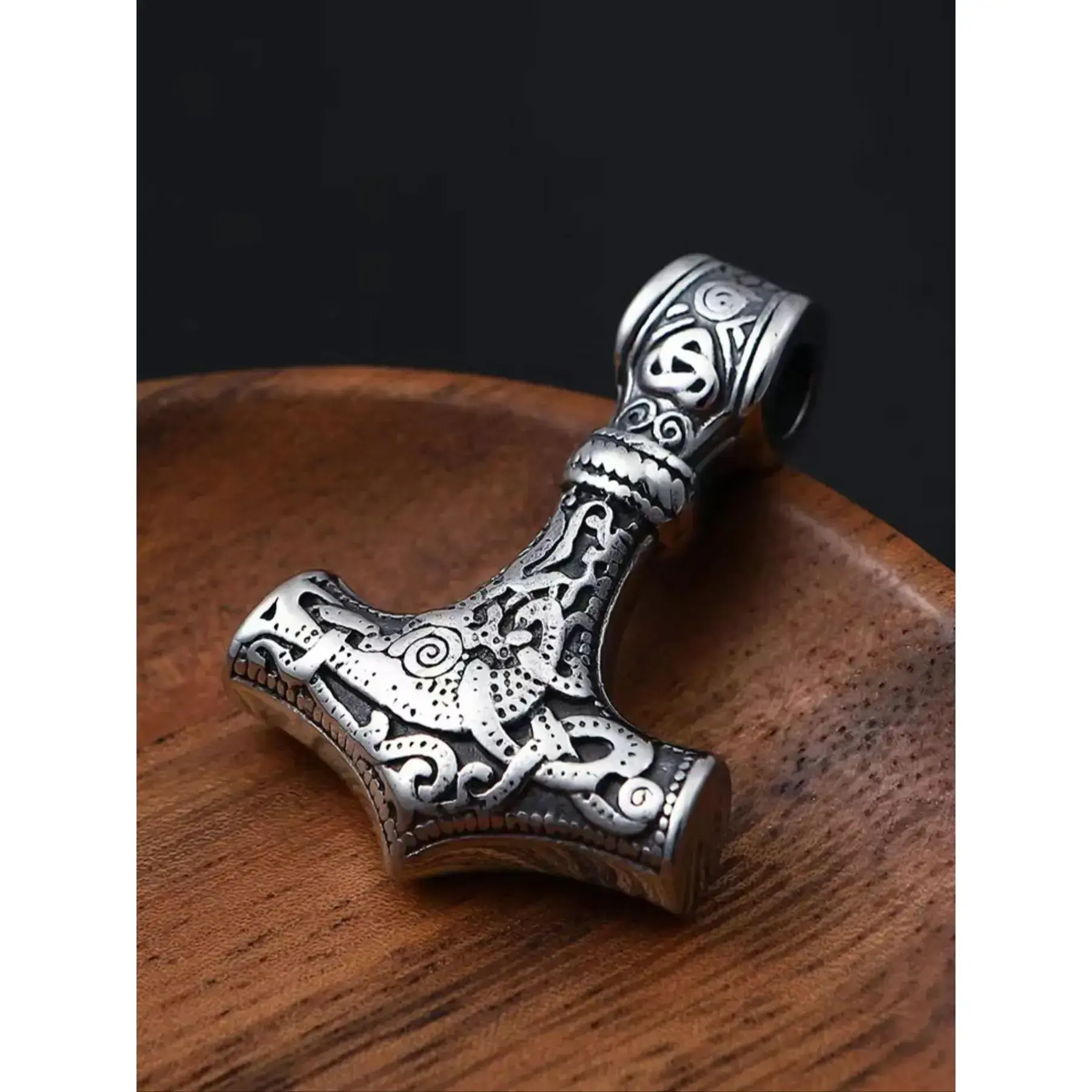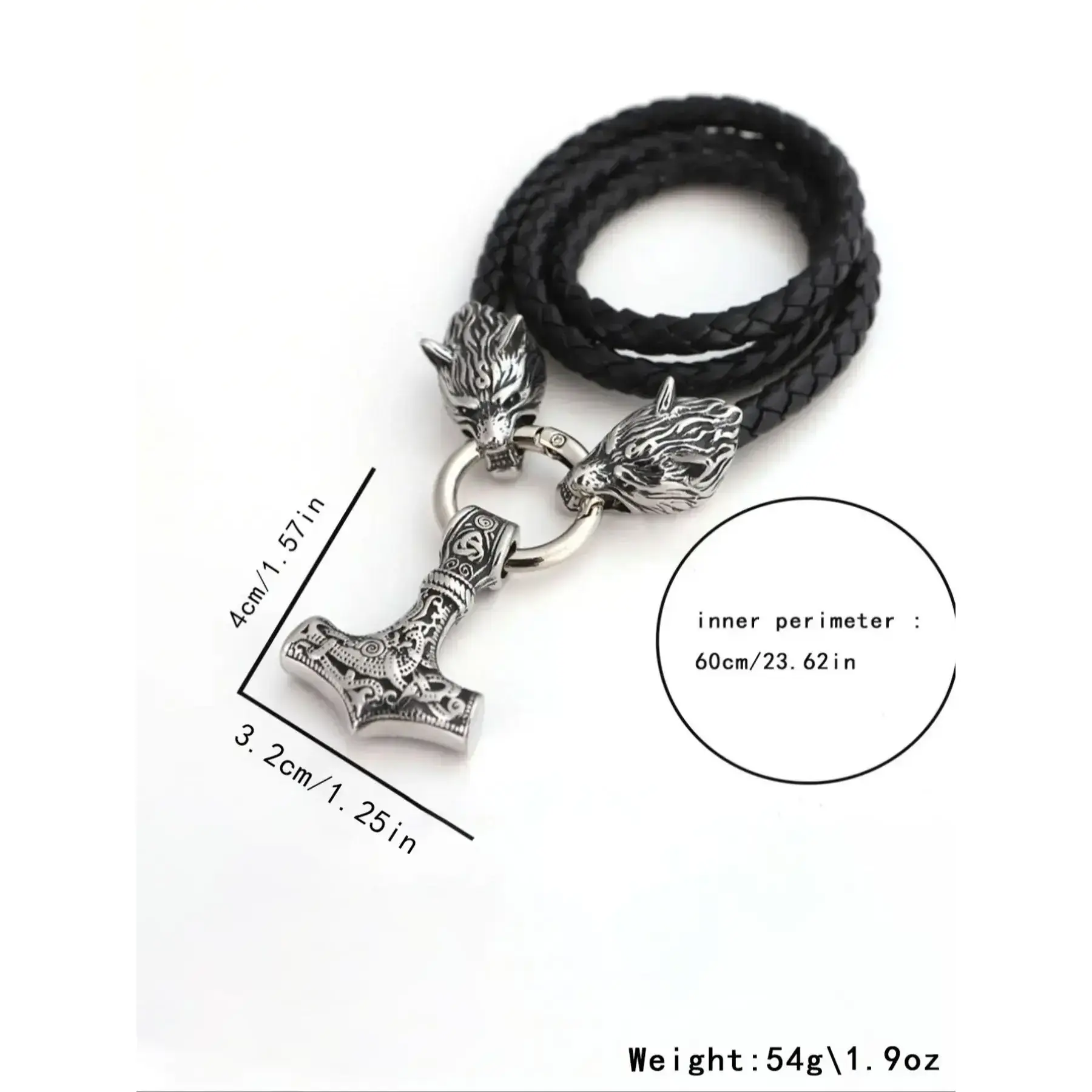 Vintage Viking Hammer Wolf Design Pendant Necklace, Punk Jewelry for Party, Daily Clothing Decor, Trendy Pu Leather Strap Jewelry for Birthday Gift without Box