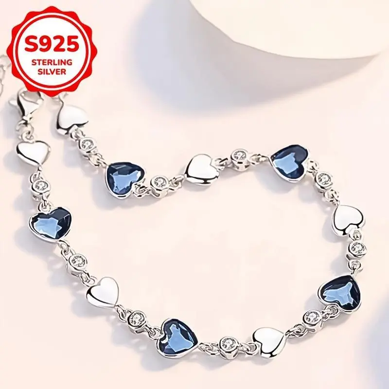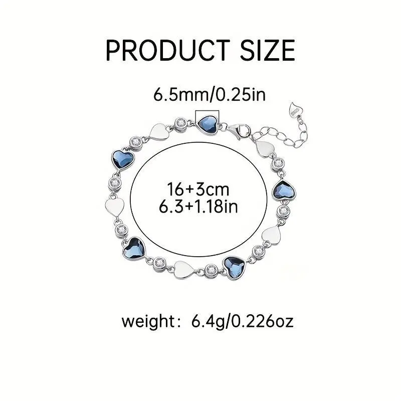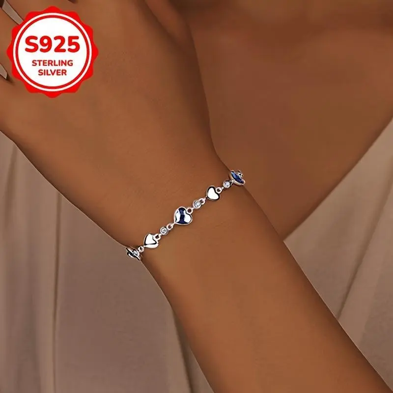 1pcElegant925SterlingSilverHeartBraceletwithSyntheticZirconia,SimpleOceanHeartDesign,AugustBirthstone,DailyWear&Gift,6.4g