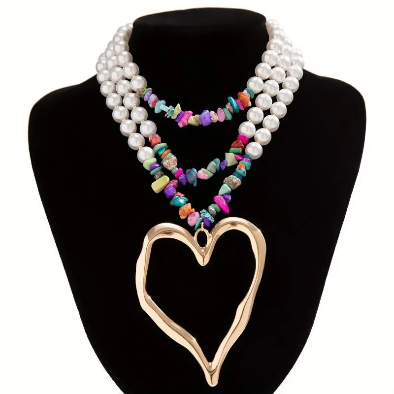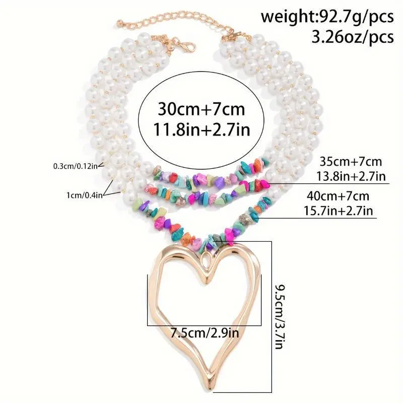 Multi-Layer Faux Pearl & Turquoise Heart Pendant Necklace - Boho-Chic, Perfect for Vacation & Parties, Valentine's Gift