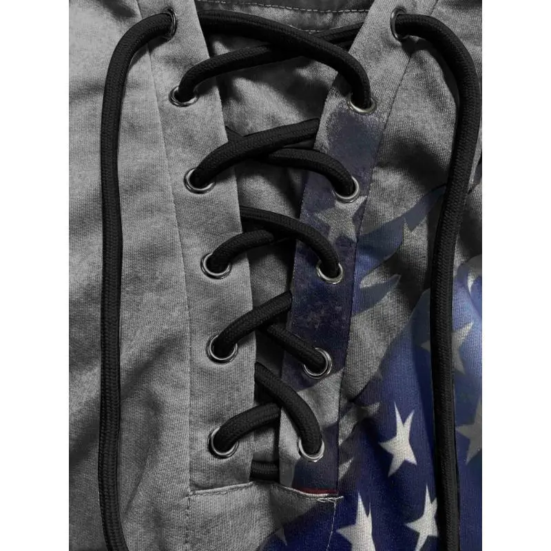 1pc Men'S Plus Size Casual Hoodie with American Flag Print, Vintage-Inspired Geometric Pattern, Polyester Knit Fabric with Slight Stretch, Regular Fit Hooded Sweatshirt country concert outfit clearance deals today