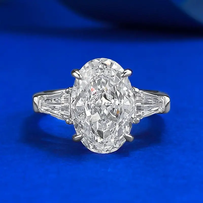 S925 silver oval ice flower cut Ring 8*12mm 8A cubic zirconia ring fashion jewelry accessory woman girl promise ring-356