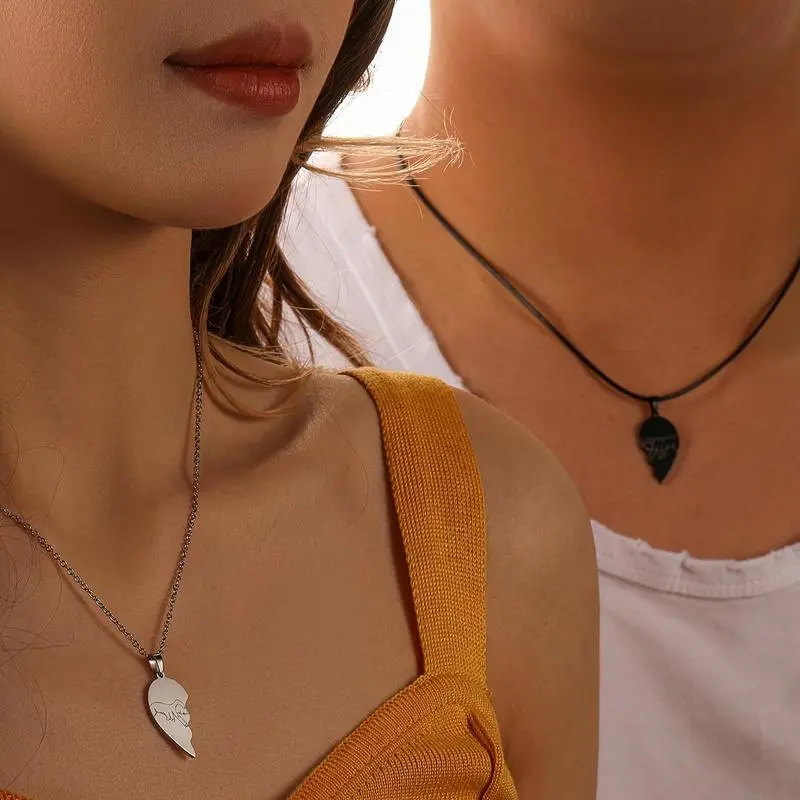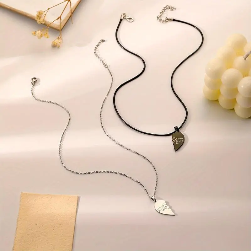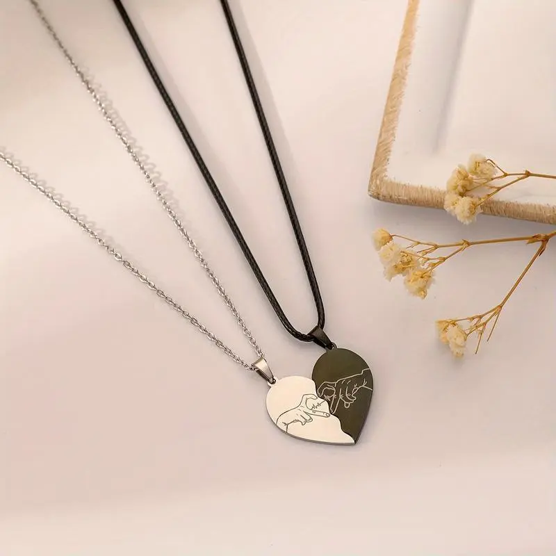 1SetOf2pcsStainlessSteelLaserEngravedHeart-shapedCoupleDesignFashionableCoupleNecklaceforMenAndWomen